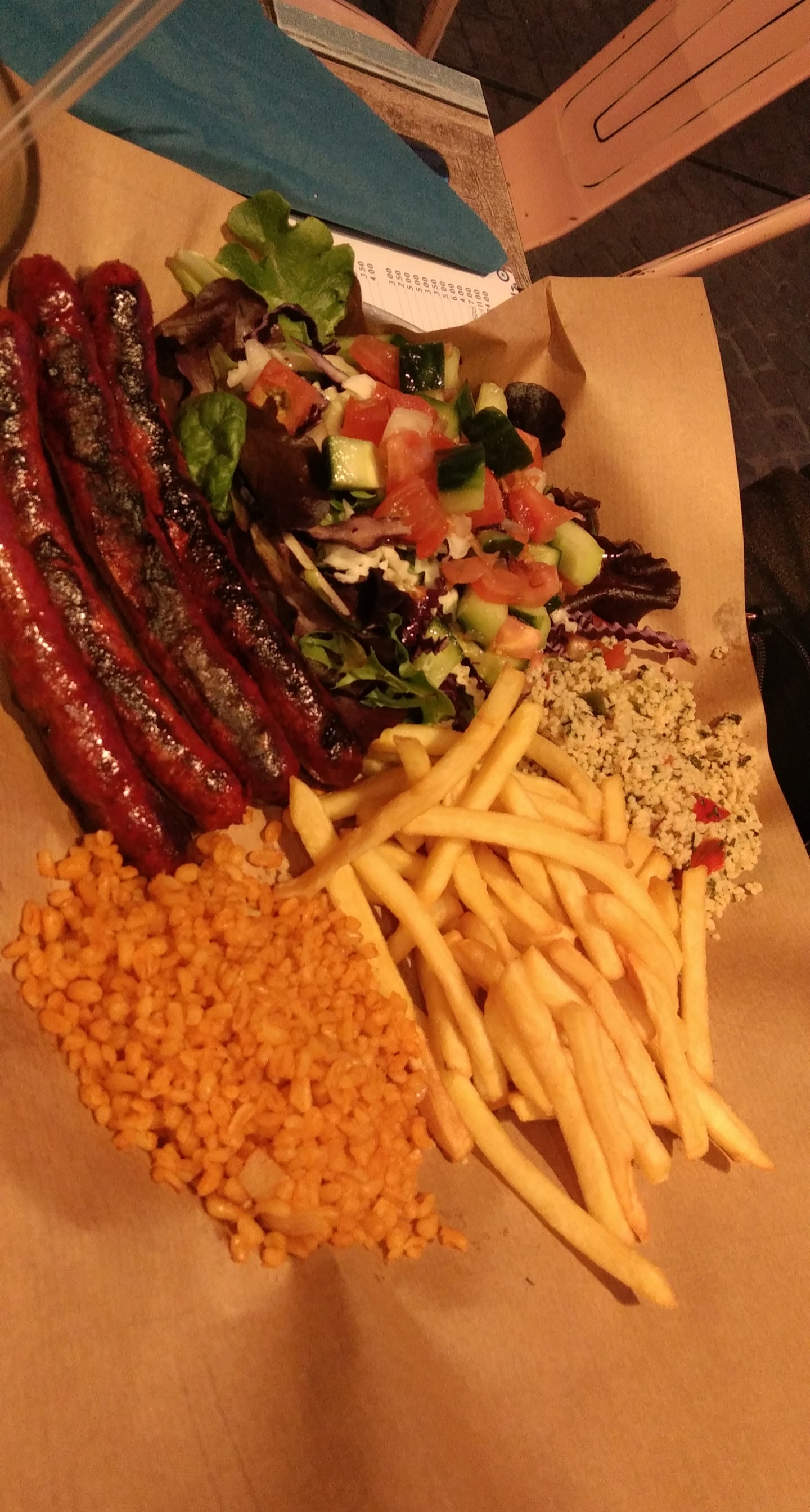 Posté le 01/05/2024 à 16:27"Je suis tombé dessus par pur hasard car j'étais affamé. En bon épicurien que je suis, j'ai été séduit par la carte. J'ai pris une assiette grillade avec un poulet curry, et comment dire que j'ai littéralement pleuré sur le poulet. Non chef, c'est du sérieux là. La sauce yaourt avec le poulet était tout bonnement divin, la salade méditerranéenne des plus fraîches, et son petit riz pilaf bien parfumé était parfait, tout comme son pita maison ! Seul bémol : les frites surgelées, qui contrastent avec le reste de l'assiette."