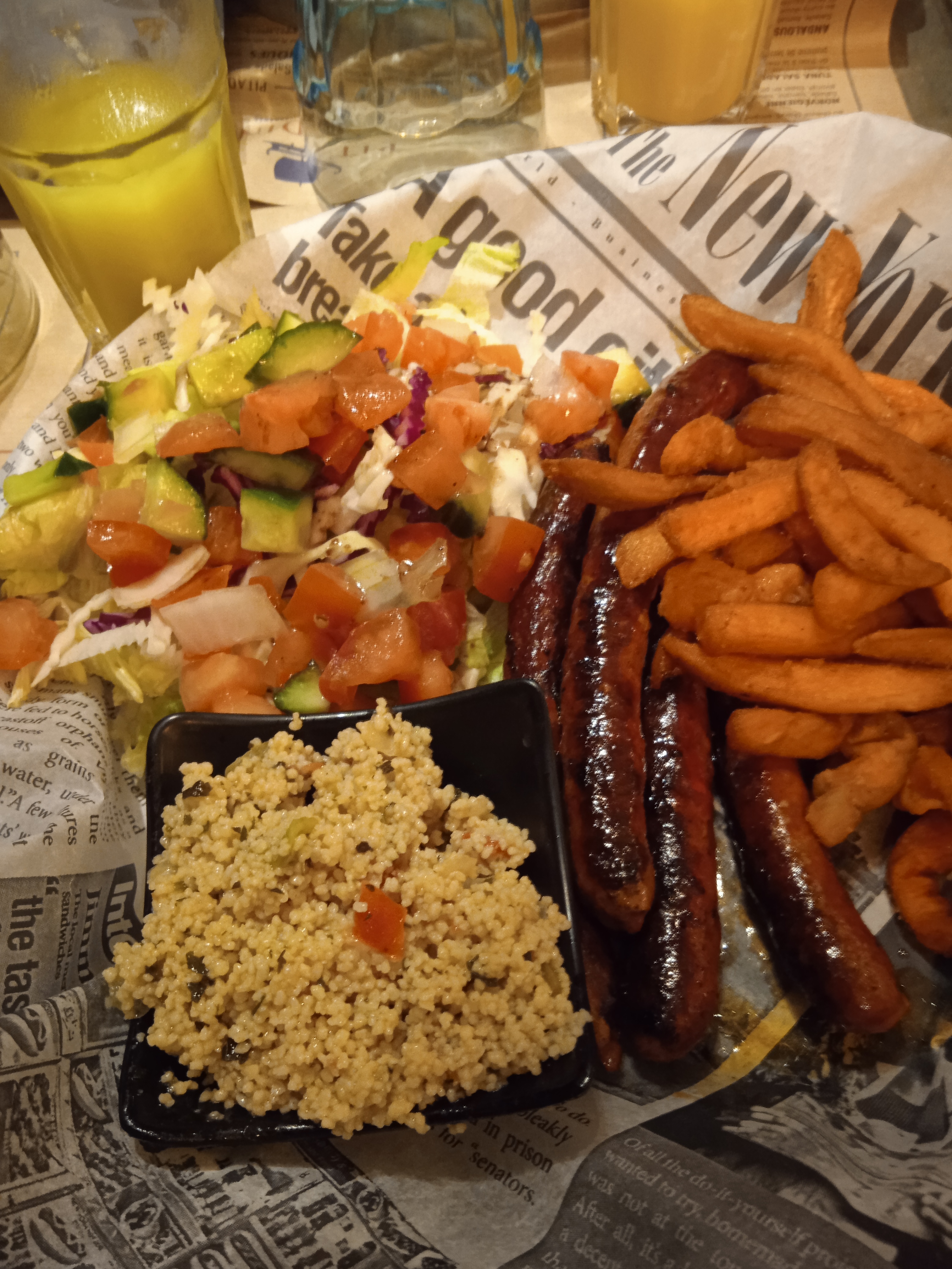 Restaurant familial. Bonne accueille. servi en 15 minutes Dans l'ensemble la nourriture était bonne. Un beau visuel, assiette colorées qui vous donne faim. + Les frites de patates douces étaient très sucrées, c'est ce que j'ai préféré. - Les frites ne sont pas maison, donc classique. - le Riz jaune trop cuit. - la viande hachée, manquait de gras. - le blanc de poulet, juste un peu moins de cuisson, pour qu'ils ne soient pas trop sec. - le boulghol pas assez relevé. + Le s aubergines grillées, pas mal. + Chawarma, poulet, bon.