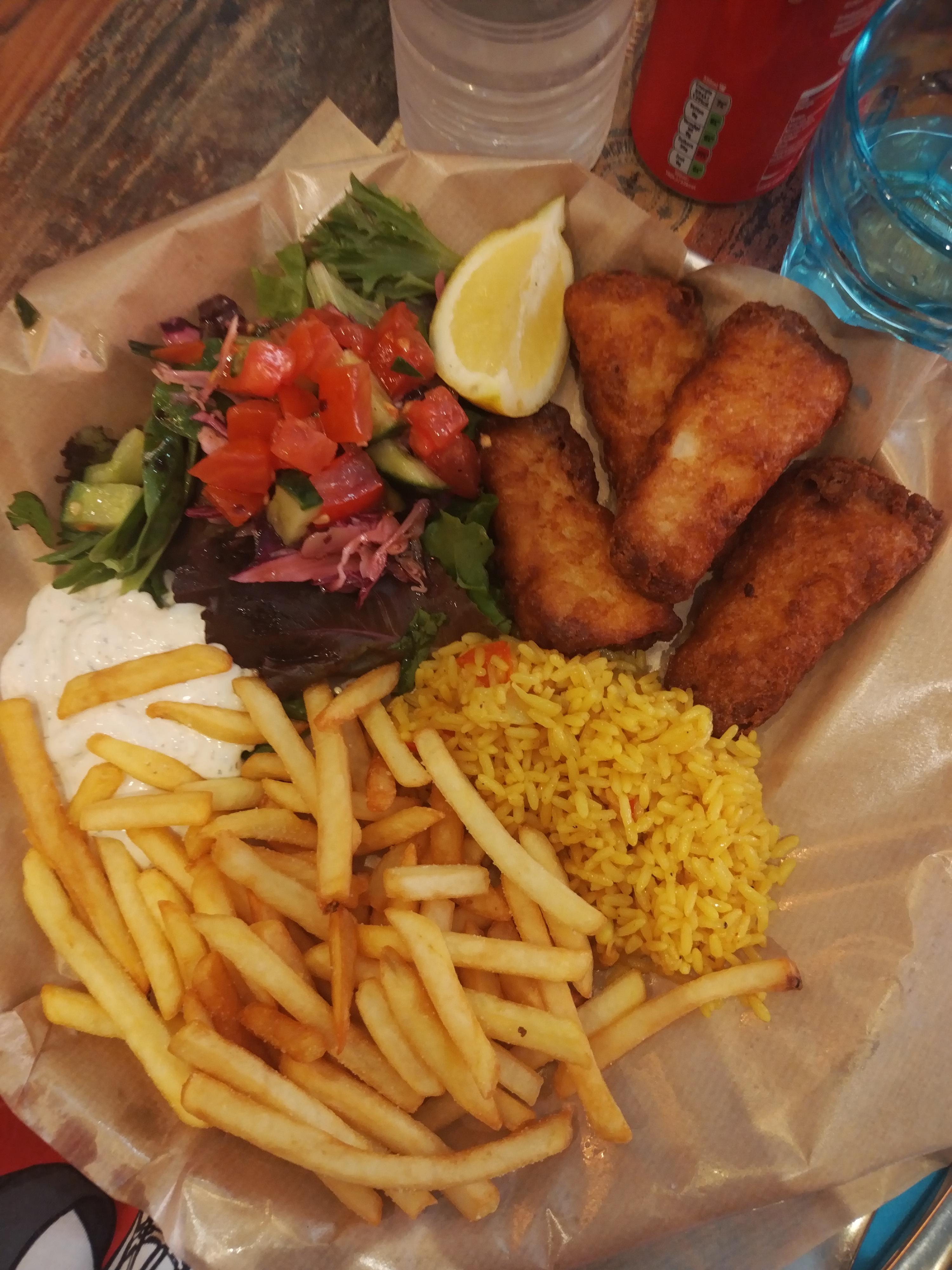 Posté le 29/12/2024 à 20:49"50€ pour 3 pitas ? Un menu enfant à 12€50 pour deux pauvres morceaux de poissons panés surgelés , 5 frites surgelés et une toute petite salade ? Et on a pas le droit à une cannette, juste un verre de sirop ? Que ca pour 12€50 ? Faites un effort ! Baissez les prix, ou proposez au moins des frites maisons ! C’est malhonnête de votre part! Très déçu"