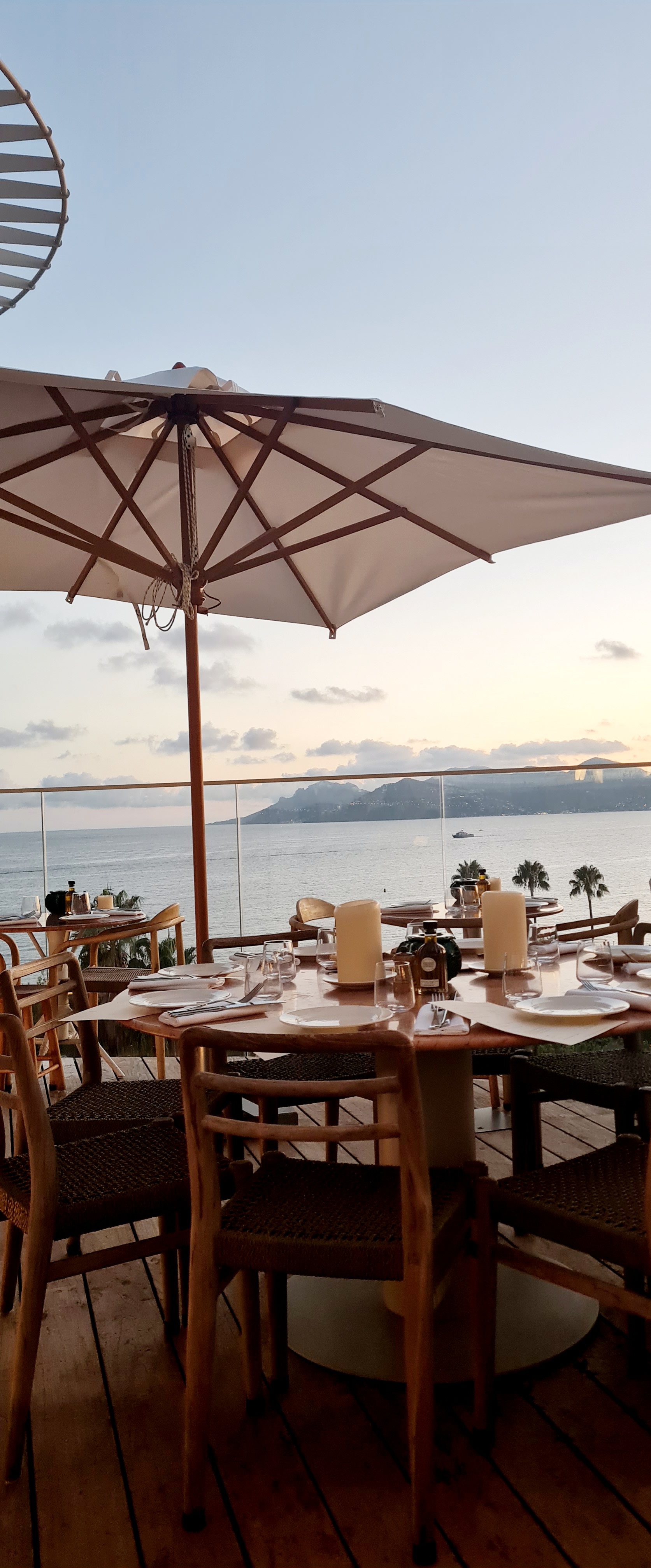 Très Déçus. Lieu à éviter ! Service : pour ainsi dire inexistant et tout juste digne d'une brasserie de quartier (ce qui est problèmatique par rapport aux prix pratiqués) : aucun suivi (par ex : personne ne s'est inquiété de savoir si ça nous plaisait), aucune personnalisation, pas de service du vin (ne serait-ce que ponctuel), verres et bouteille dégoulinants de vin une fois le premier service fait (sans que ça ne gêne le serveur), tactile trop familier d'un des responsables... > ceci dit, même à l'entrée de l'hôtel, qui à notre arrivée n'était pas du tout busy, nous n'avons été tout juste calculés que par une seule personne qui nous as juste formulé un bonsoir (pas de proposition d'aide à nous orienter par exemple etc...) Carte des Vins : sans intérêt avec même des vins de cave passables à des tarifs de (très) bons vins (à signaler : milésimes non indiqués + erreurs sur les descriptifs) Nourriture : tout juste correcte, pas sans saveur mais rien que du très basique (là encore à l'opposé des tarifs que pas grand chose ne justifie) : où est la sublimation promise ??? Alors ok c'est Cannes, ok il y a la vue tant qu'il fait jour... mais là ça sent ouvertement le foutage de gueule qui plus est du fait que l'on soit dans le cadre d'un hôtel 5* (dont on est à mille lieux des standards) car on pourrait aussi mentionner la table avec assiettes d'attente (?) façon cantine et sales, table qui pour le reste est très sommaire (là encore pas mieux qu'au bistro du coin) + pied de verre à vin ébréché, kit d'assaisonnement sale, etc... >>> en un mot : abstenez-vous, il y a tant d'autres restaurants qui valent (bien) plus le détour (ou à minima seront plus en adéquation avec le prix et le standing revendiqué)... RQ : nous sortons très régulièrement dans tout style (et tarifs) de restaurant : nous avons vécu une de nos moins bonnes expériences depuis des années...