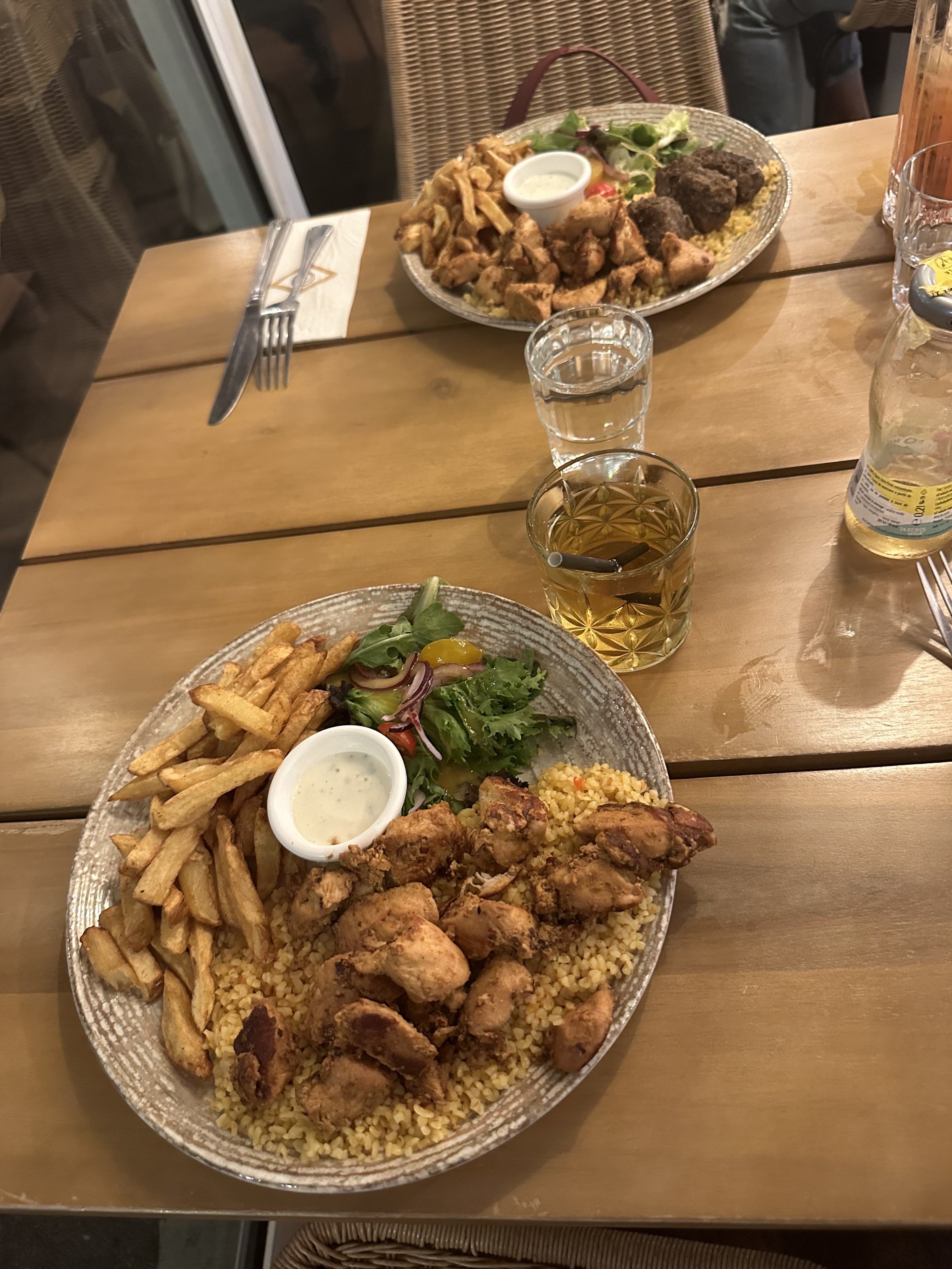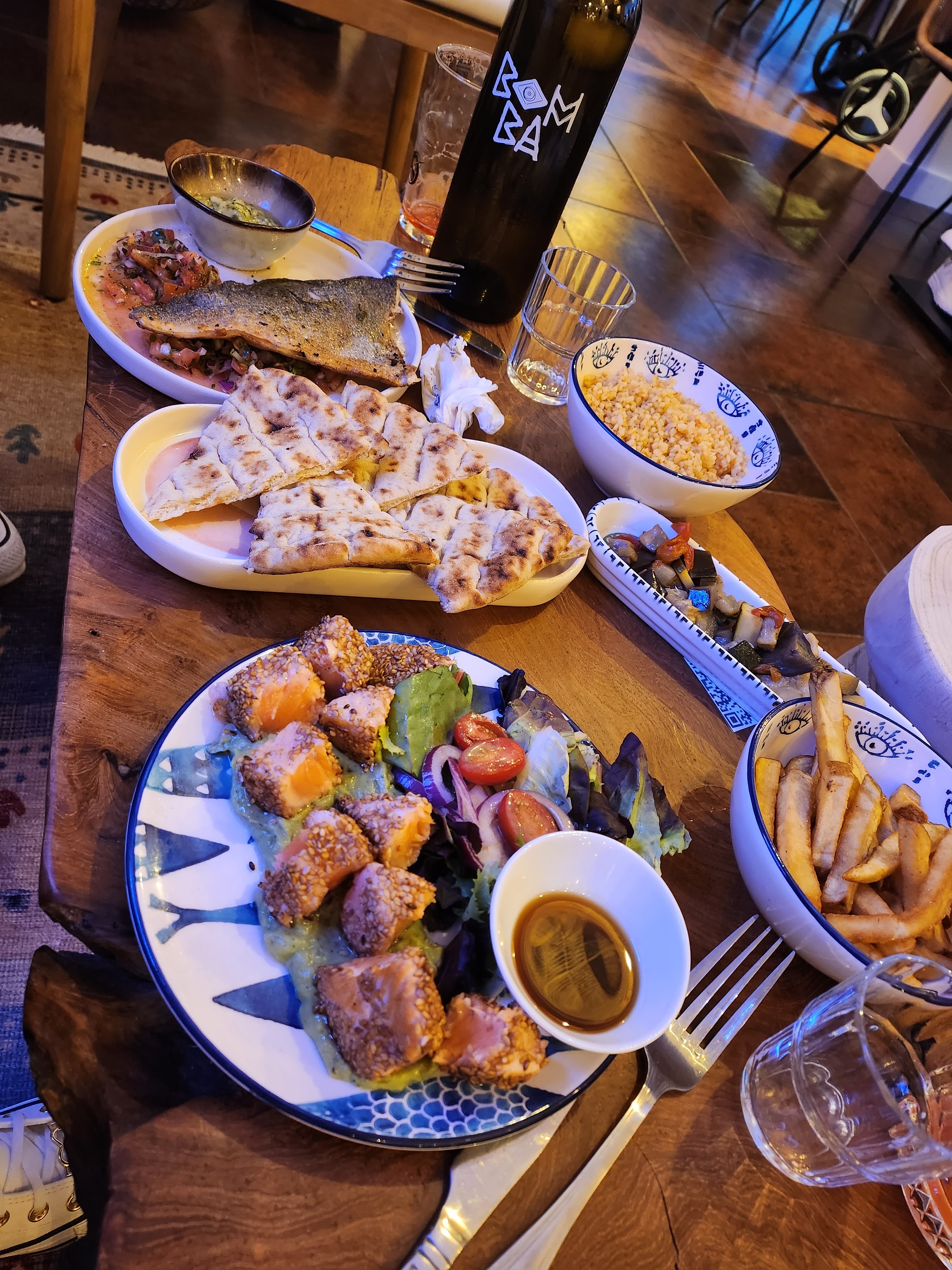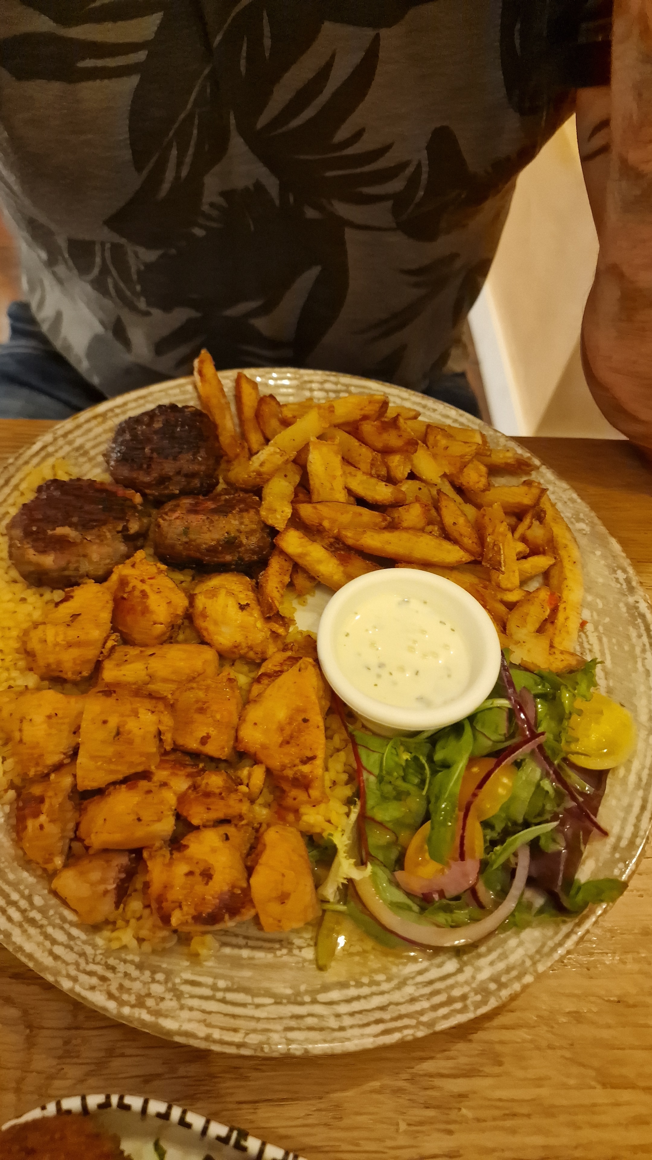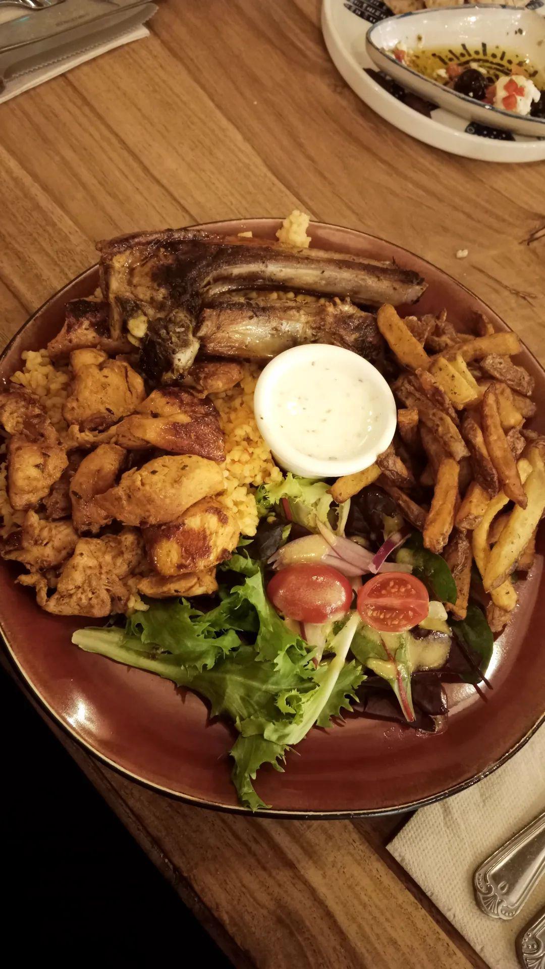 Belle découverte , manquait un peu de sel pour les Mezzes ( guacamole et houmous ) , sinon l’effiloché d’agneau été excellent . Très copieux Manque un fond de musique en extérieur Je recommande sans soucis