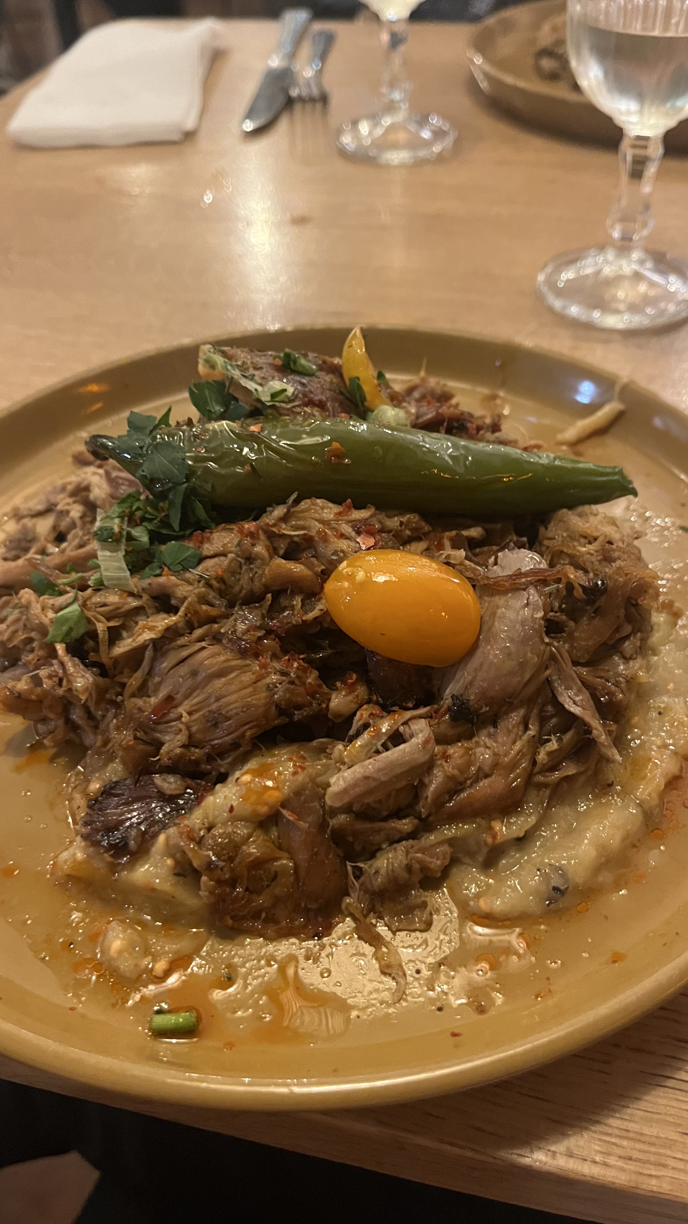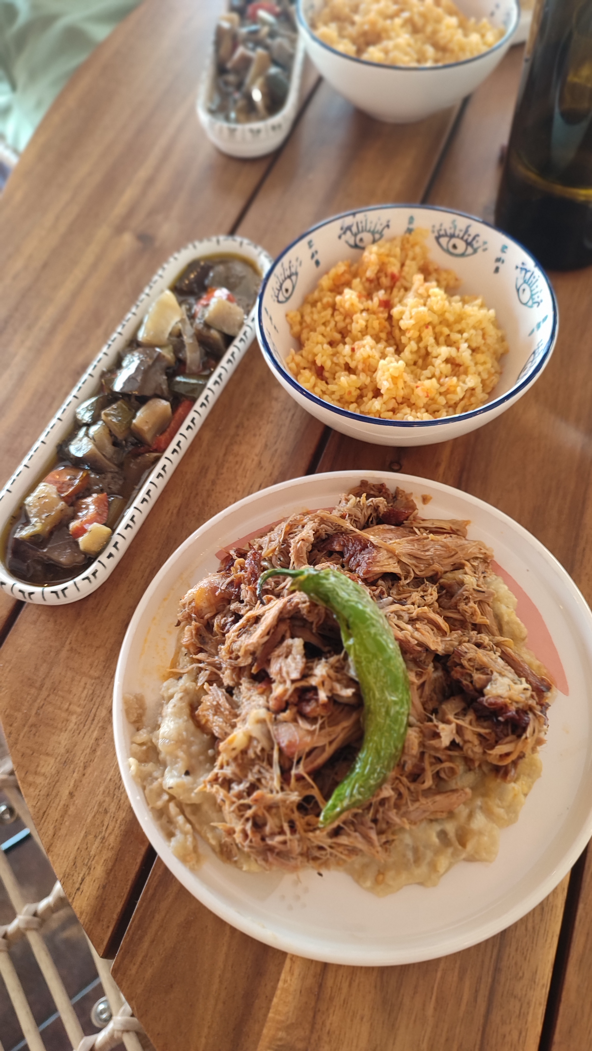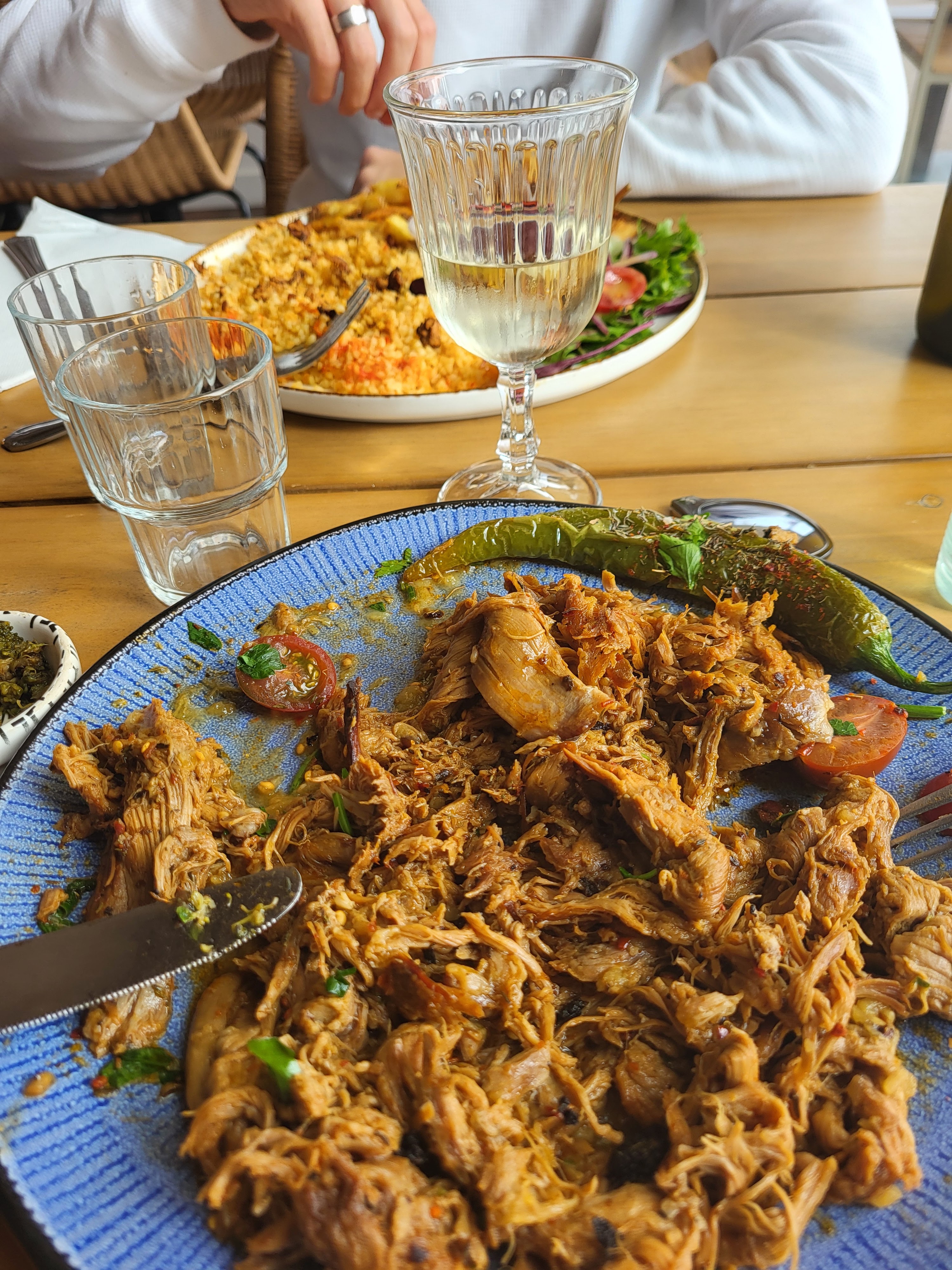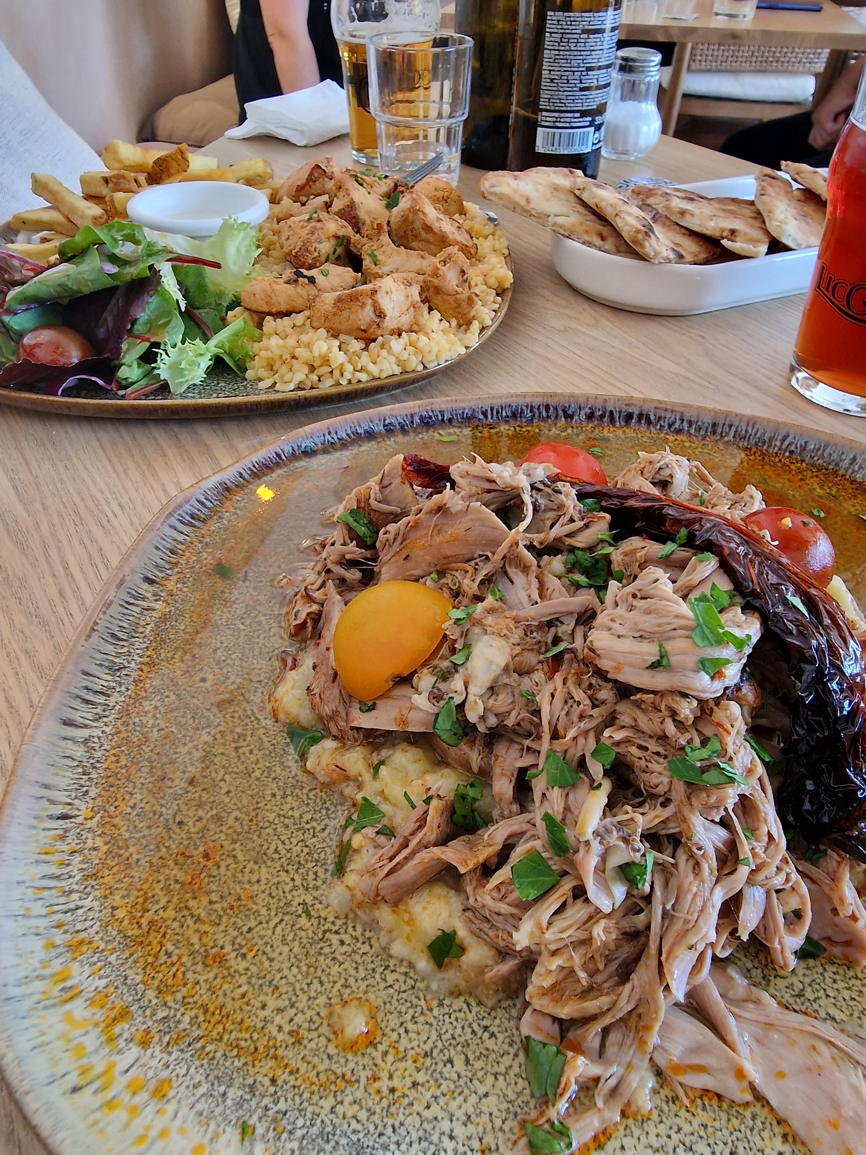 Belle découverte , manquait un peu de sel pour les Mezzes ( guacamole et houmous ) , sinon l’effiloché d’agneau été excellent . Très copieux Manque un fond de musique en extérieur Je recommande sans soucis