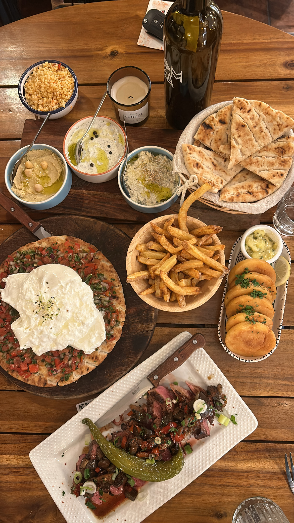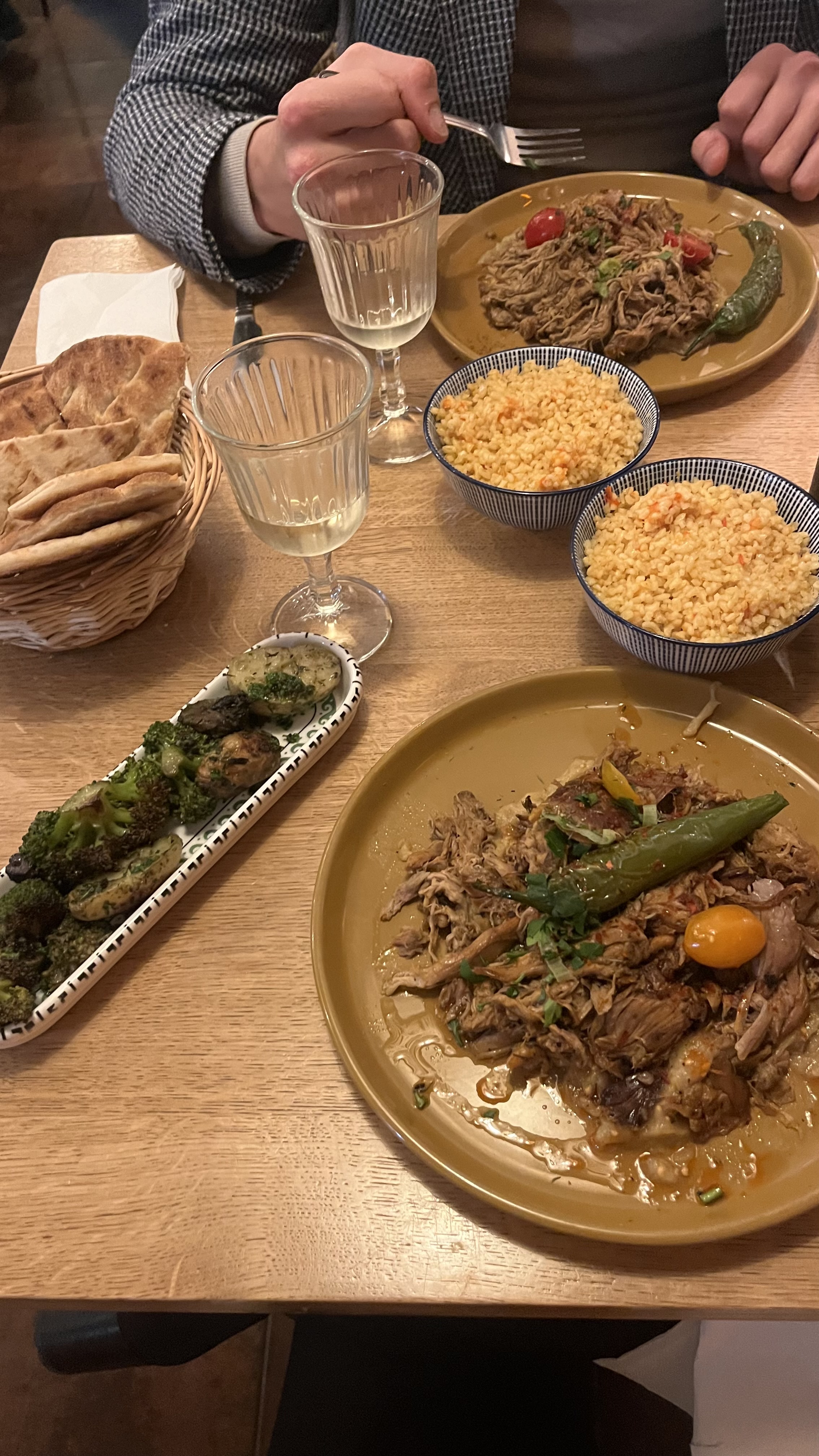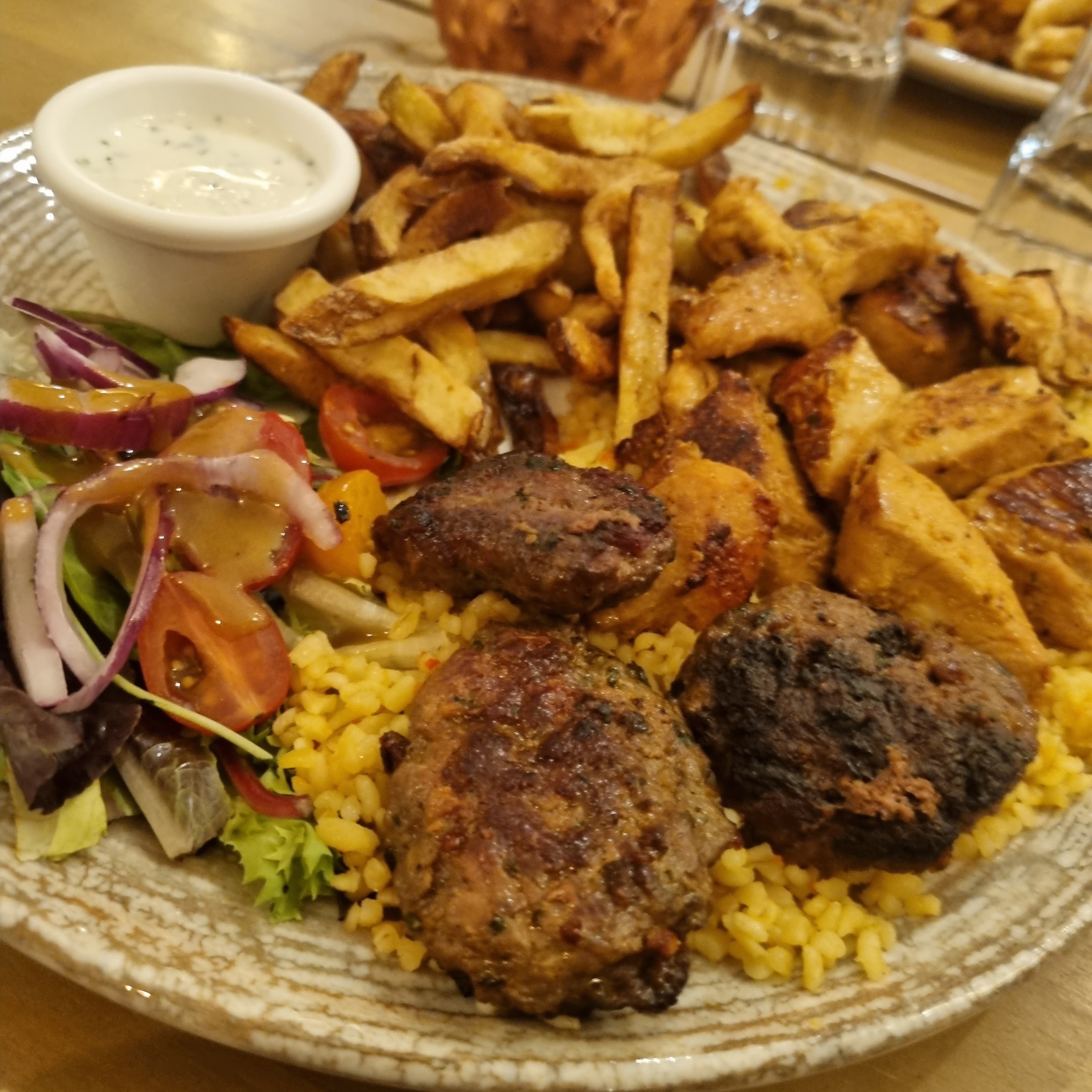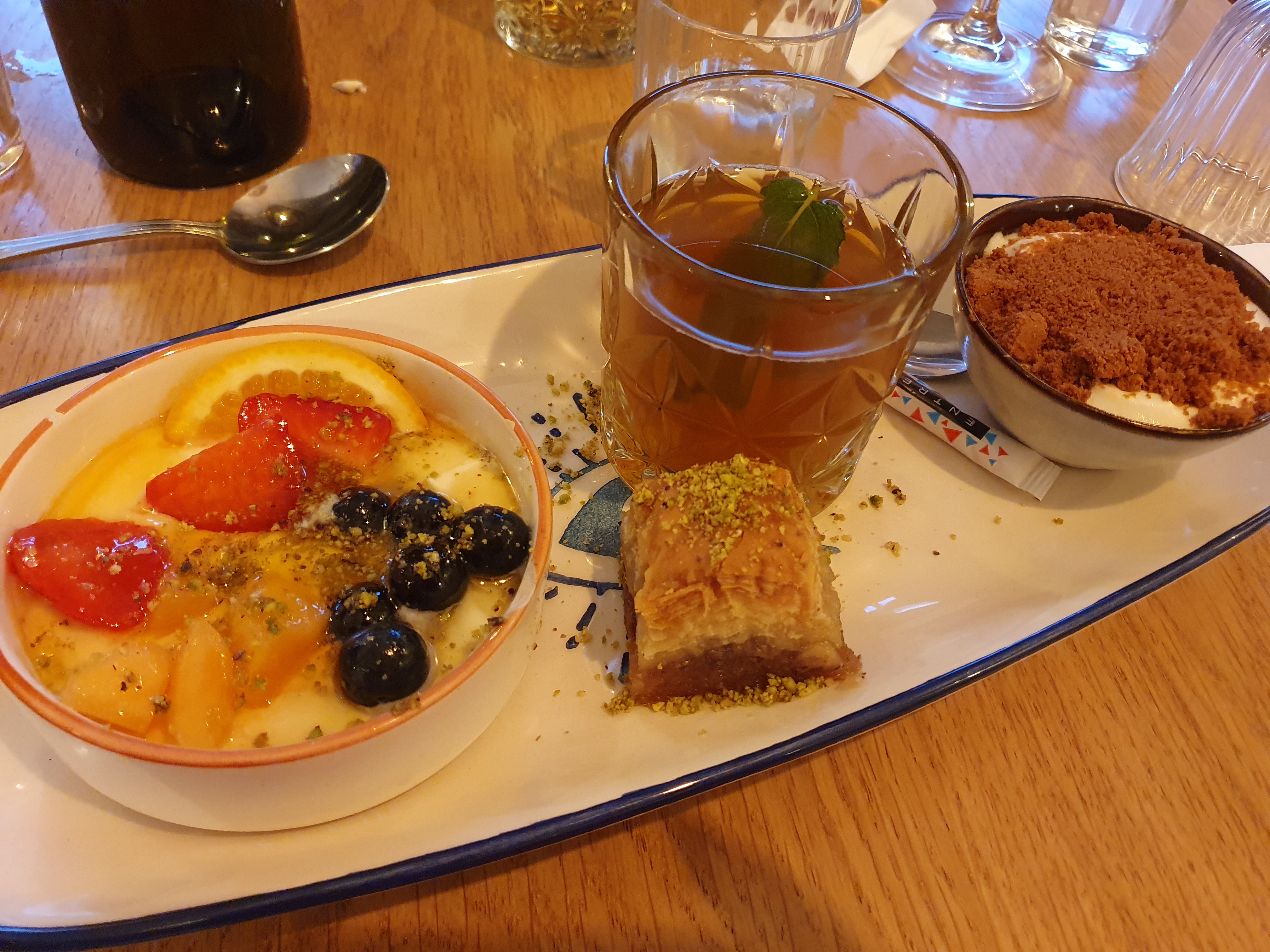 Très beau restaurant, très belle décoration. La nourriture était excellente ce mélange de pays turques libanais et greèce. On a pris du houmous vraiment très bon assez leger. La sauce turque yaourt grecque très très bon. Et la feta vraiment fraiche pas salé. J’ai pris un tavuk c’était excellent. Boulgour tres bin aussi. Seul petit bémol dessert trop sucré et thé sucré aussi (avis personnel)