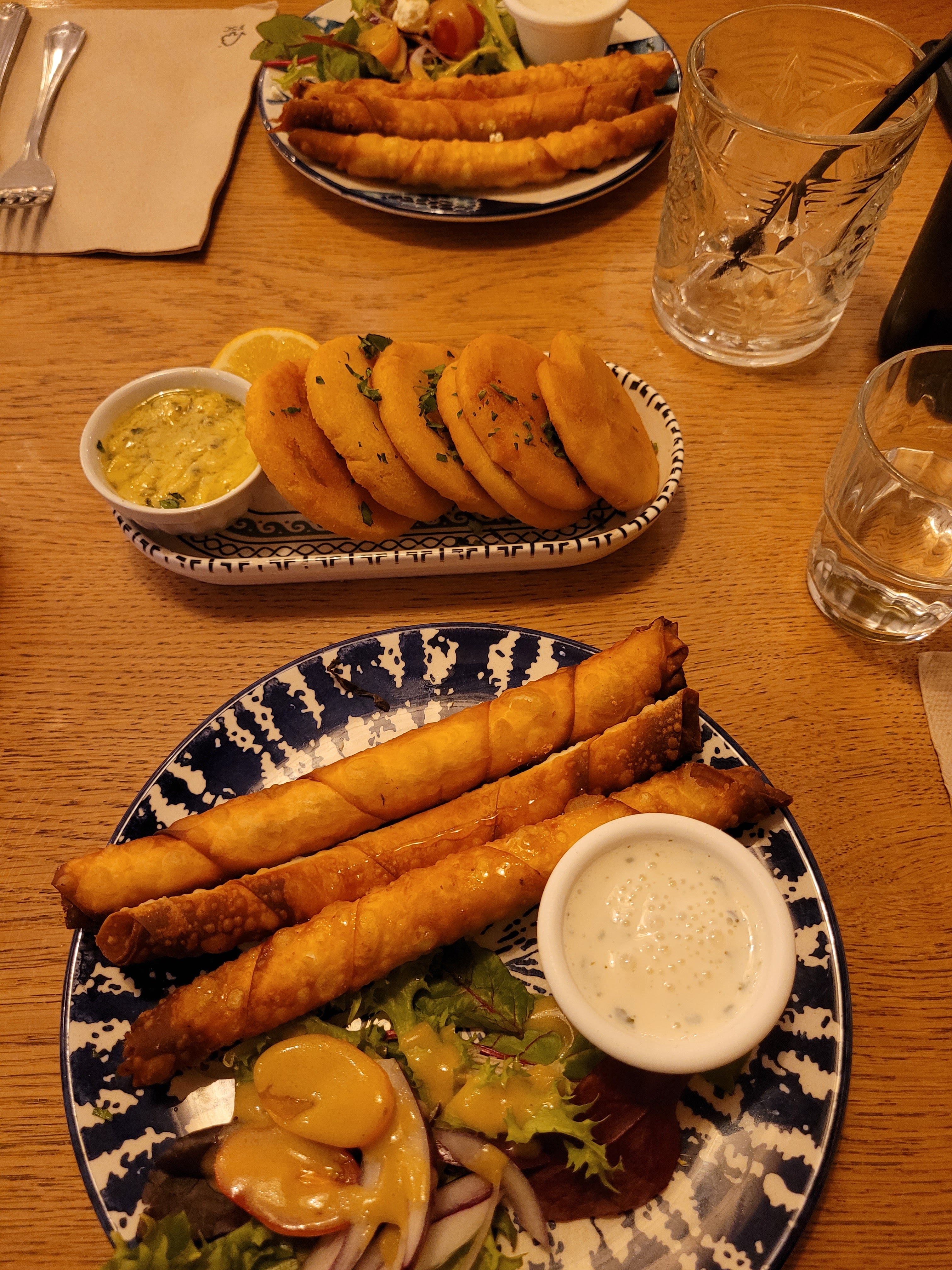 Très jolie lieu qui rappel la grece, agréable de voir ça dans une ville comme Martigues. Personnel très gentil et accueillant, le serveur prend le temps de nous servir correctement et la serveuse blonde tatouée est un amour. Cuisine excellente, de nouvelle saveurs gustatives 10/10. BigUp aux cuisiniers.