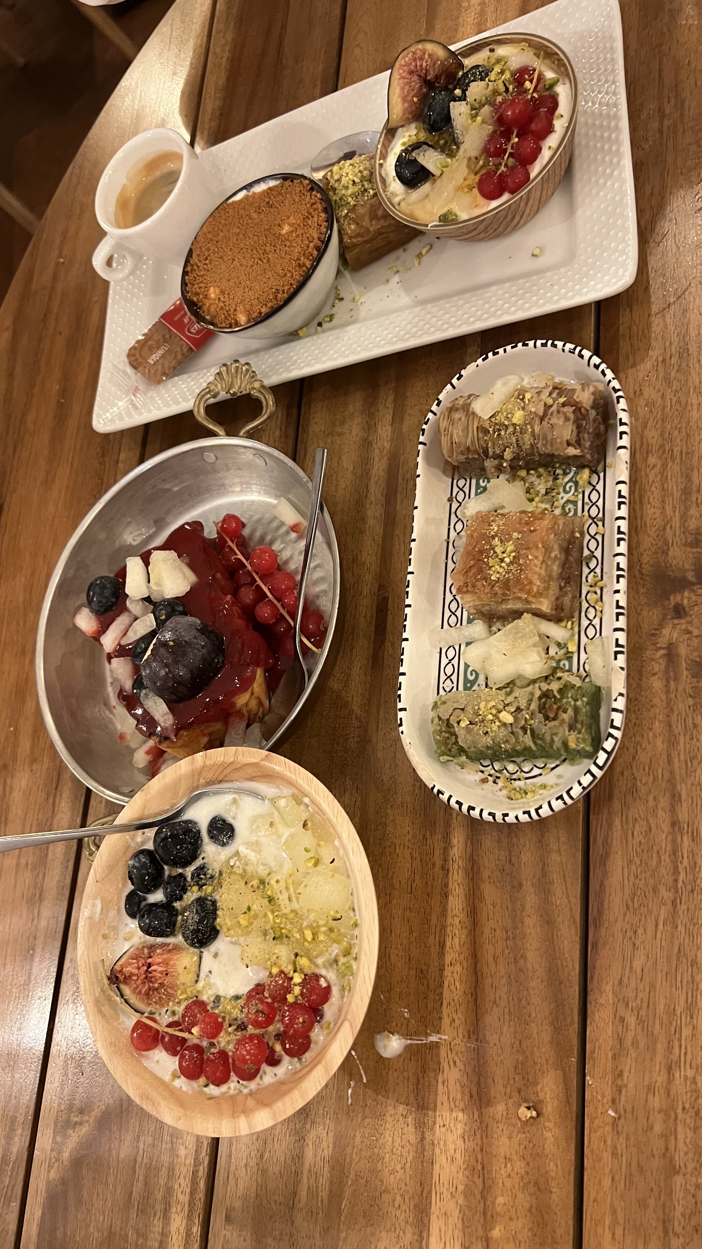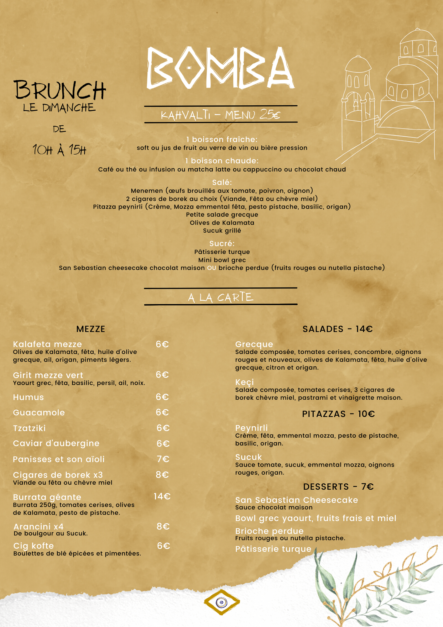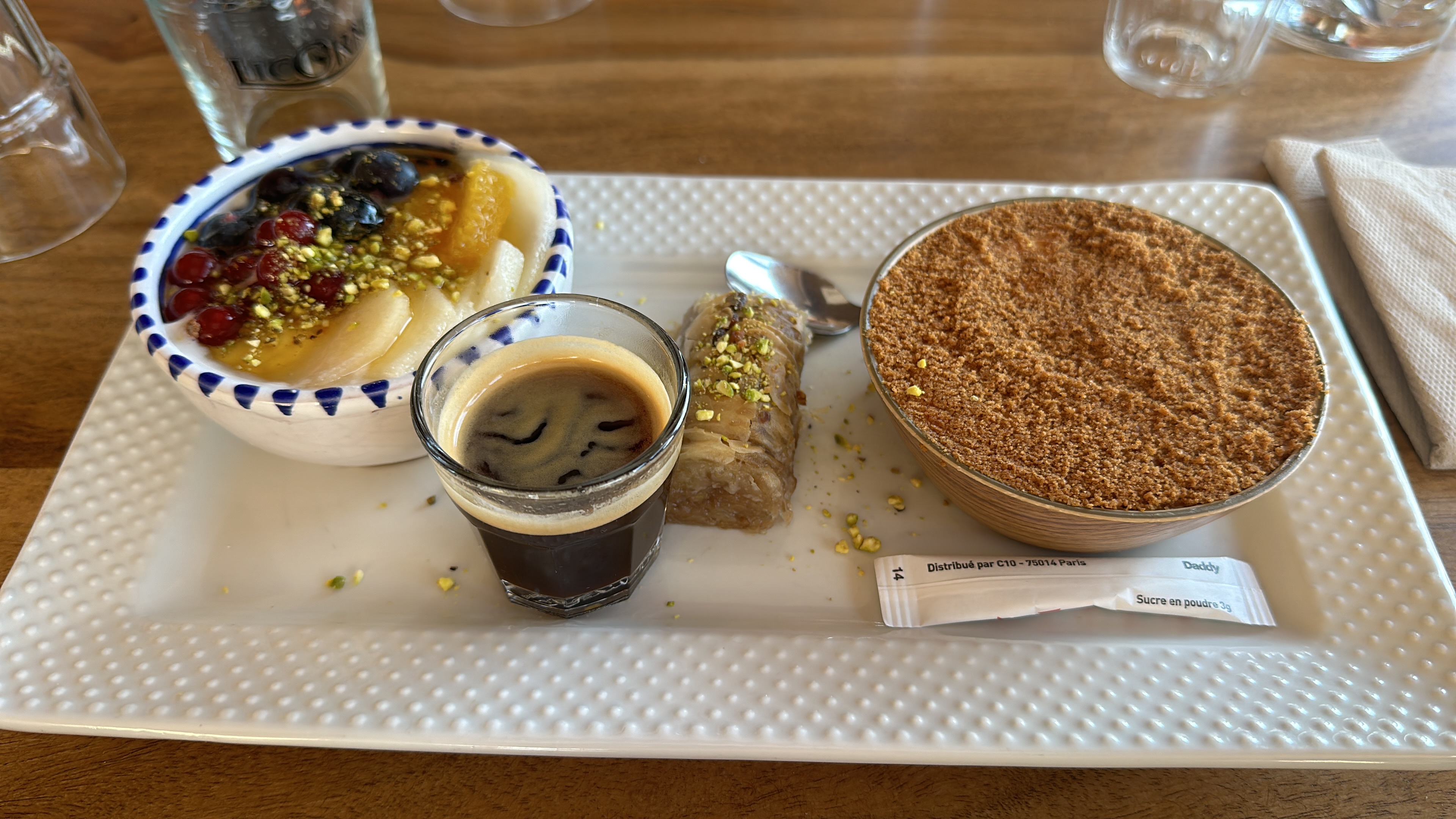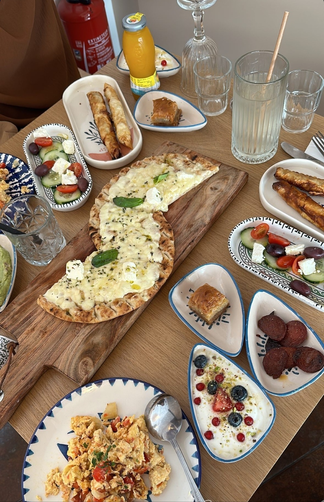J'ai été ravie par la diversité des plats proposés dans la formule brunch ! La véritable surprise de ce brunch était la pitazza, une fusion inventive entre la pizza et la pita. Sa pâte croustillante et sa garniture généreuse créent une combinaison savoureuse et originale. Ce plat à lui seul vaut le détour et je le recommande vivement. J'ai également apprécié la variété des autres mets disponibles, la salade grecque notamment, la touche orientale apportée par le thé à la menthe, ainsi que les desserts sucrés. L'ambiance du restaurant est très agréable, le personnel attentif et souriant, et la décoration est magnifique ! Si vous êtes en quête d'une escapade culinaire méditerranéenne, je vous recommande vivement de découvrir ce restaurant. Petit + : toutes les viandes sont halal !