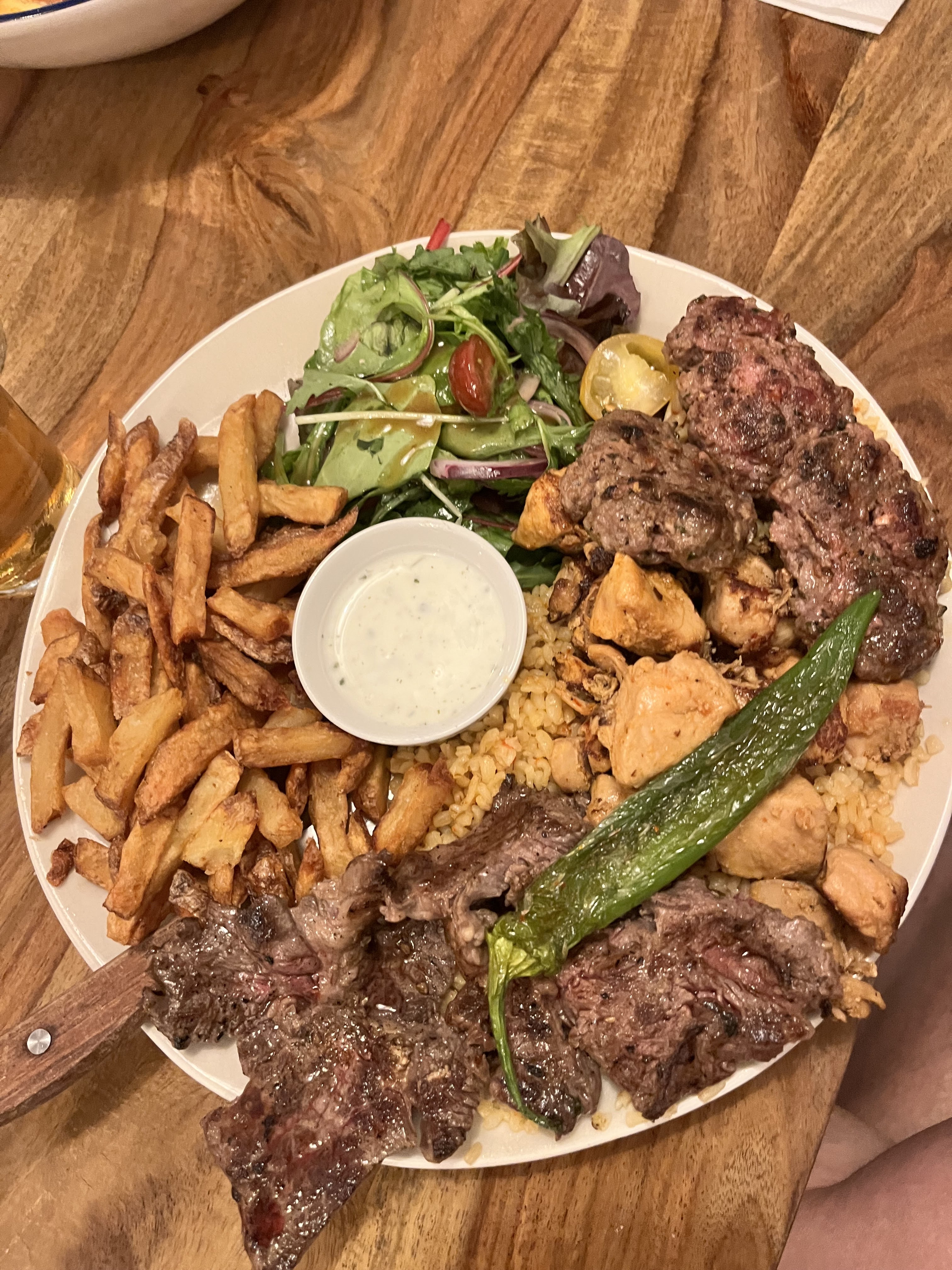 Très bon moment, de bons plats, copieux, mention spéciale pour la planche, et le tavuk crème. Service nickel.Prix correct. Je recommande+++😃