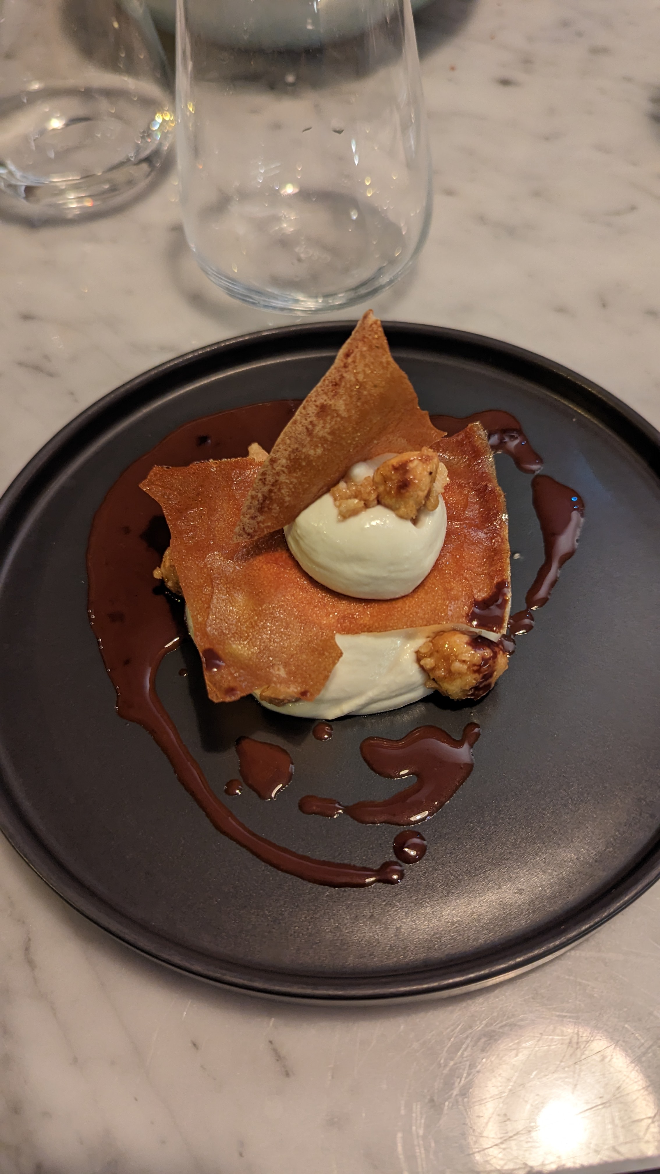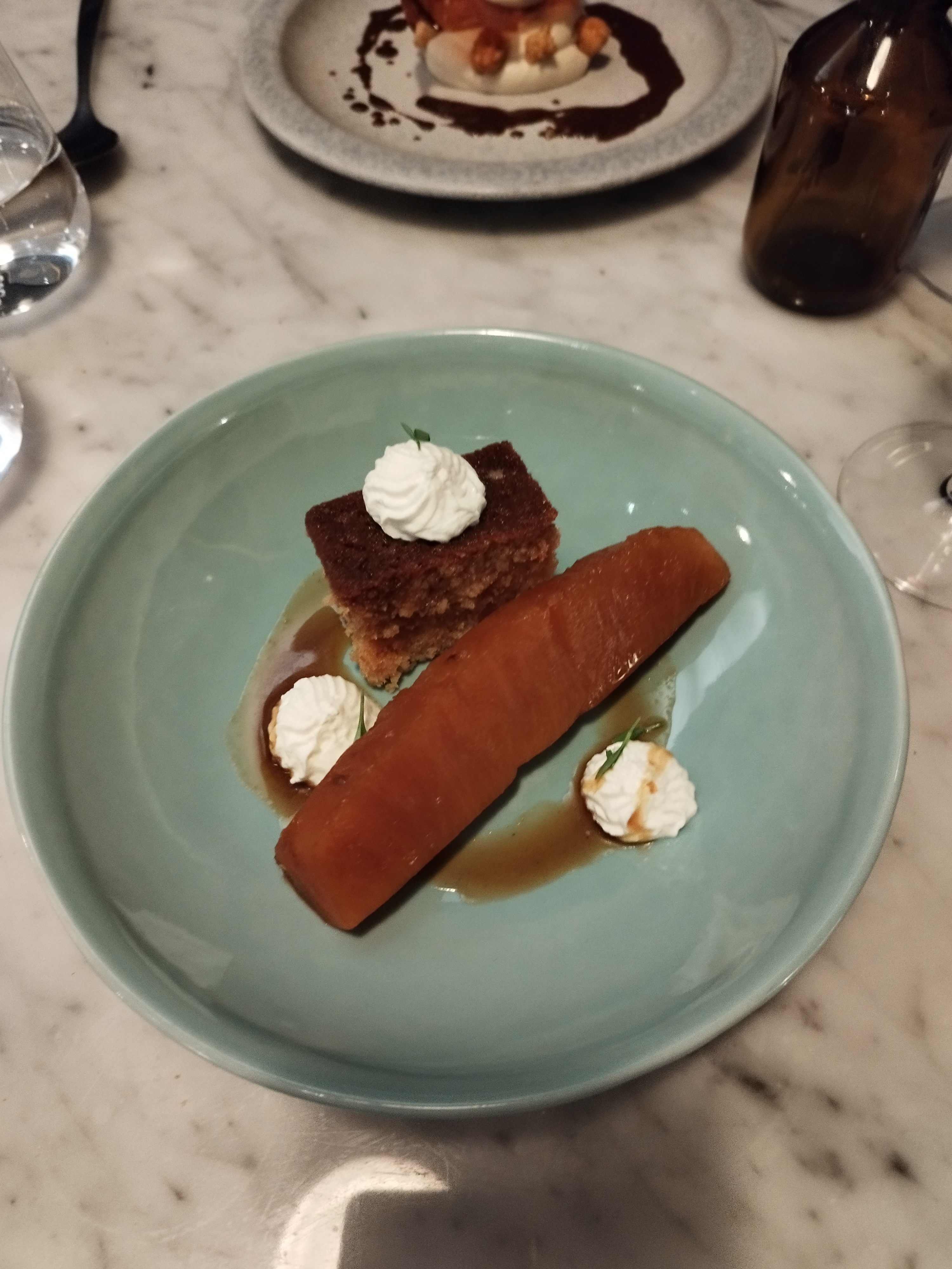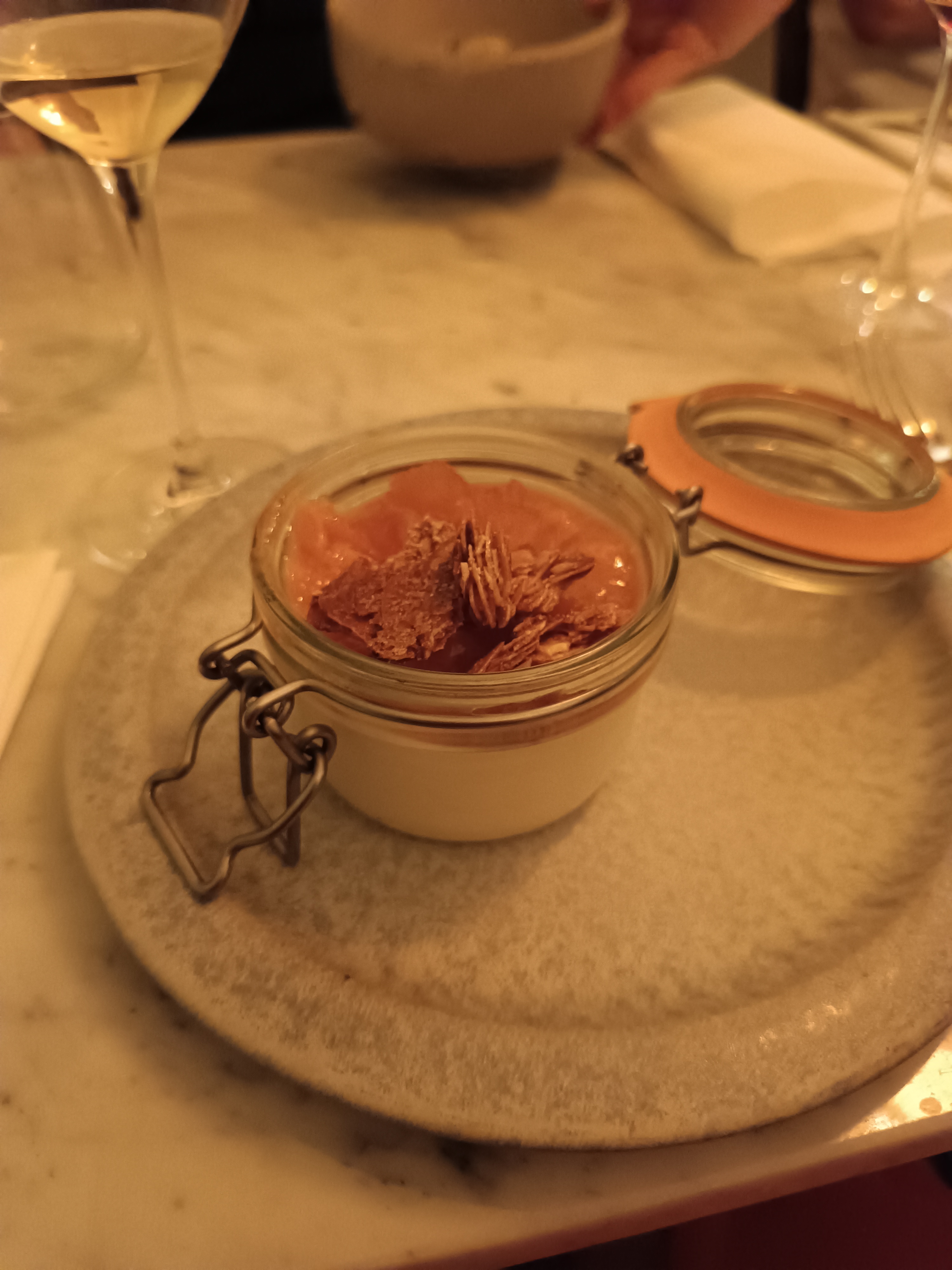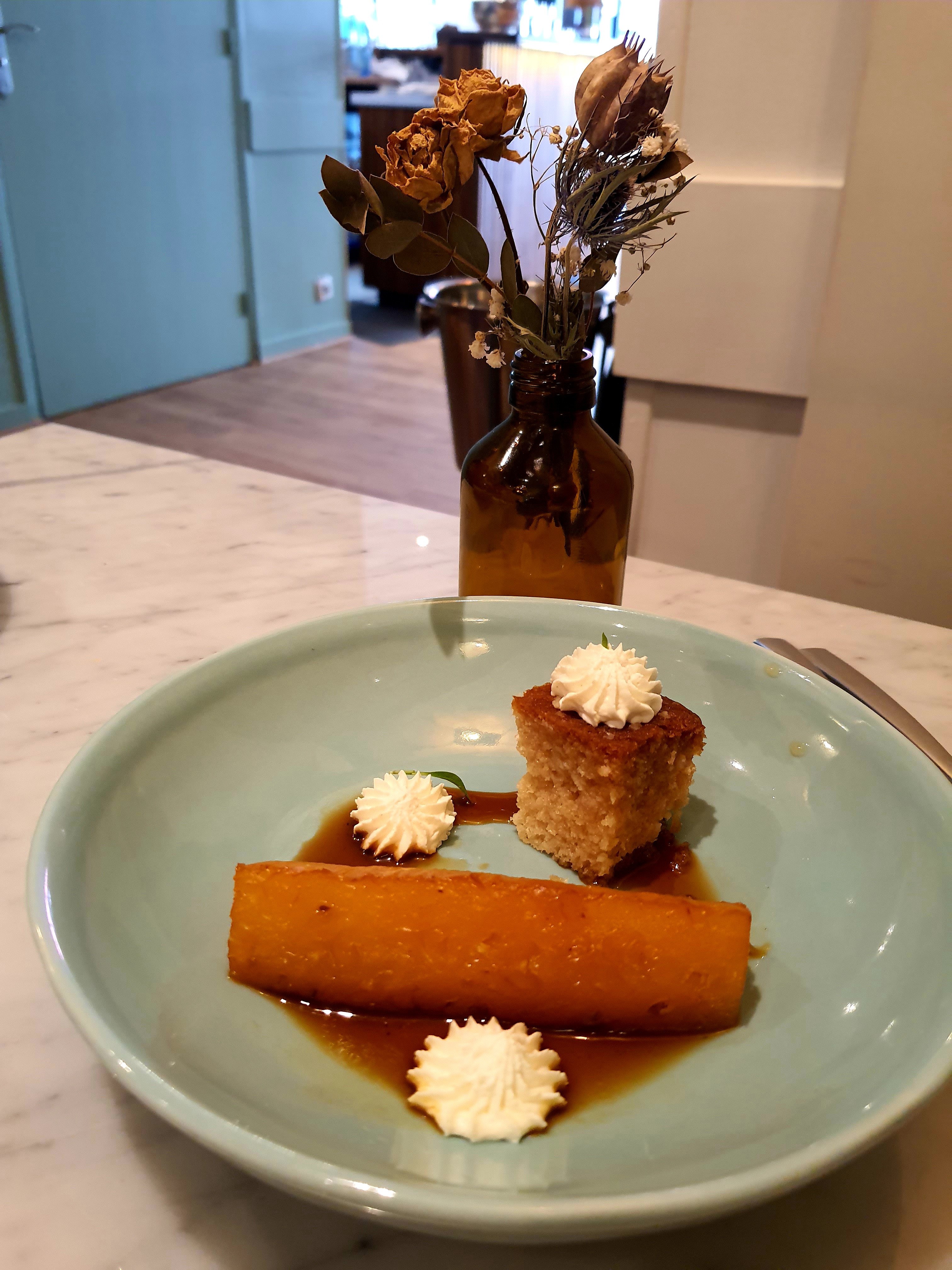 Faut que je vous parle d’un repas parfait…. On n’avait pas prévu d’y aller, en plus il était 13h45 on n’était pas sur de pouvoir rentrer, mais il ont sorti leurs nouveaux plats et leur menu midi entre 21 et 25€ entrée plat dessert…. Une dinguerie. Le gaspacho tomate pêche straciatella…. À tomber! De la douceur et de la fraîcheur, onctueux avec leur pain Bio sélectionné. Les sardines grillée ça paraît anodin, c’était juste les meilleures de ma vie (je les ai piochées chez madame 😉). Mon magret de canard était cuit absolument à la perfection, la puree, les poivrons et la petite réduction étaient bons seuls ET mélangés. Super équilibré. La daurade de madame était ABSOLUMENT somptueuse surtout avec le petit pesto par dessus, et l’accompagnement lasagne de légumes c’était exactement ce qu’elle aime. Le gâteau pistache abricot était aussi excellent parce que pour une fois ON SENT LA PISTACHE!! Et le combo abricot fini le repas avec brio. Et le tiramisu revisité version fraise était également un numéro d’équilibriste entre l’acidité de la rhubarbe, le sucré doux de la fraise, pas écœurant du tout. En plus ils sont trop sympas 😁