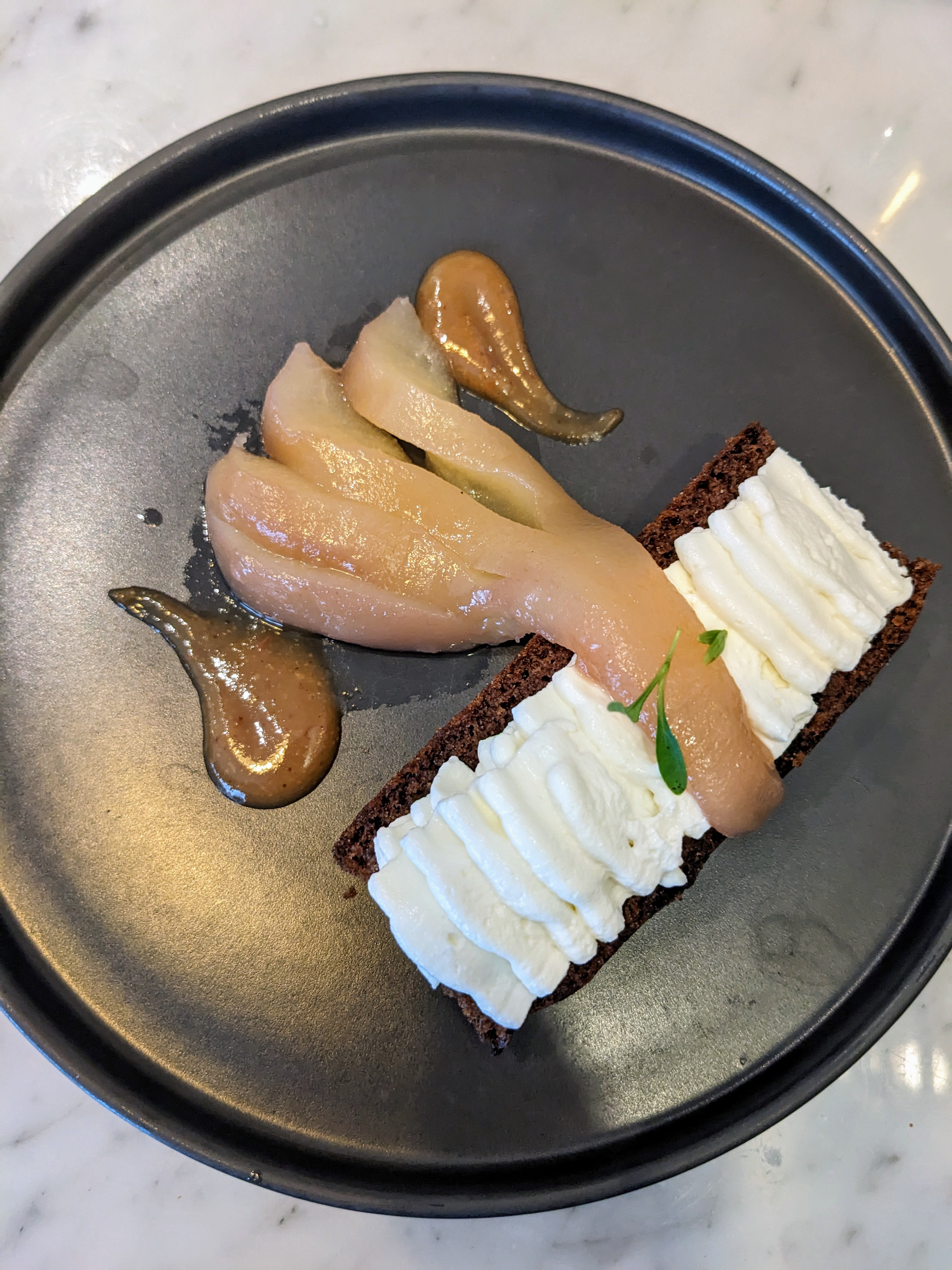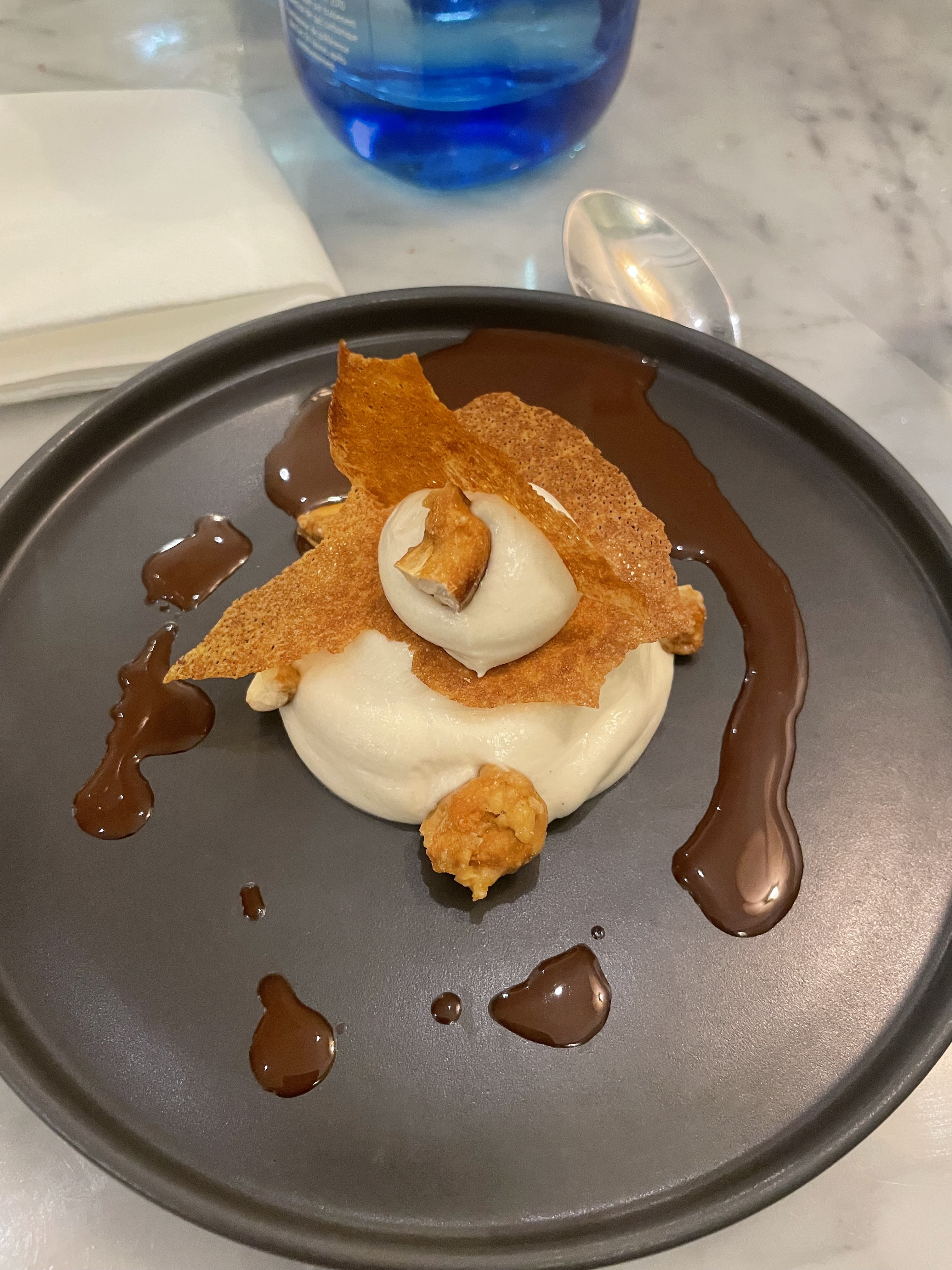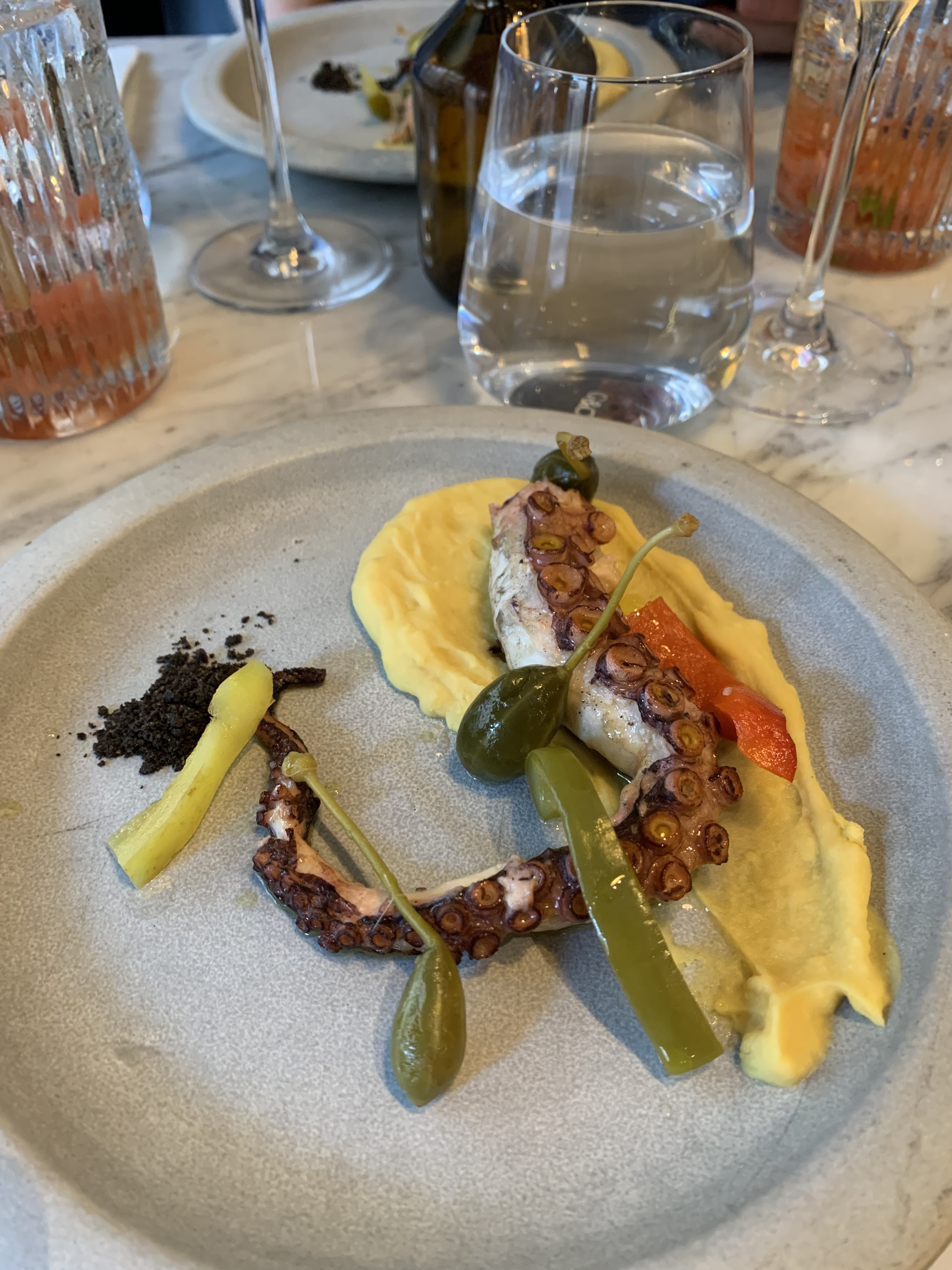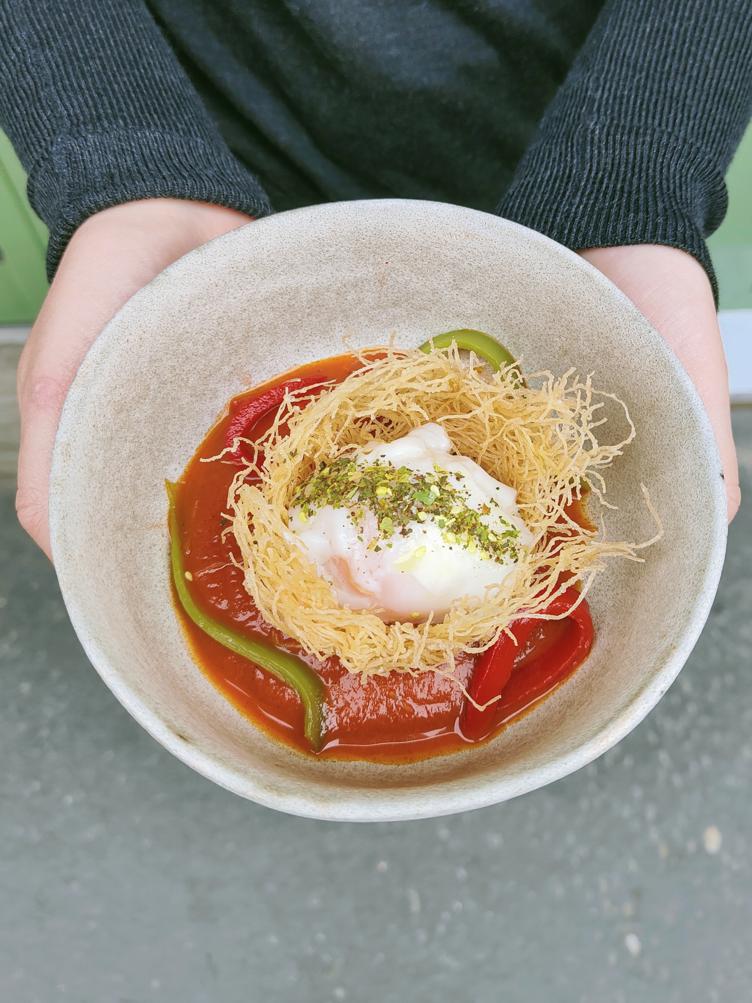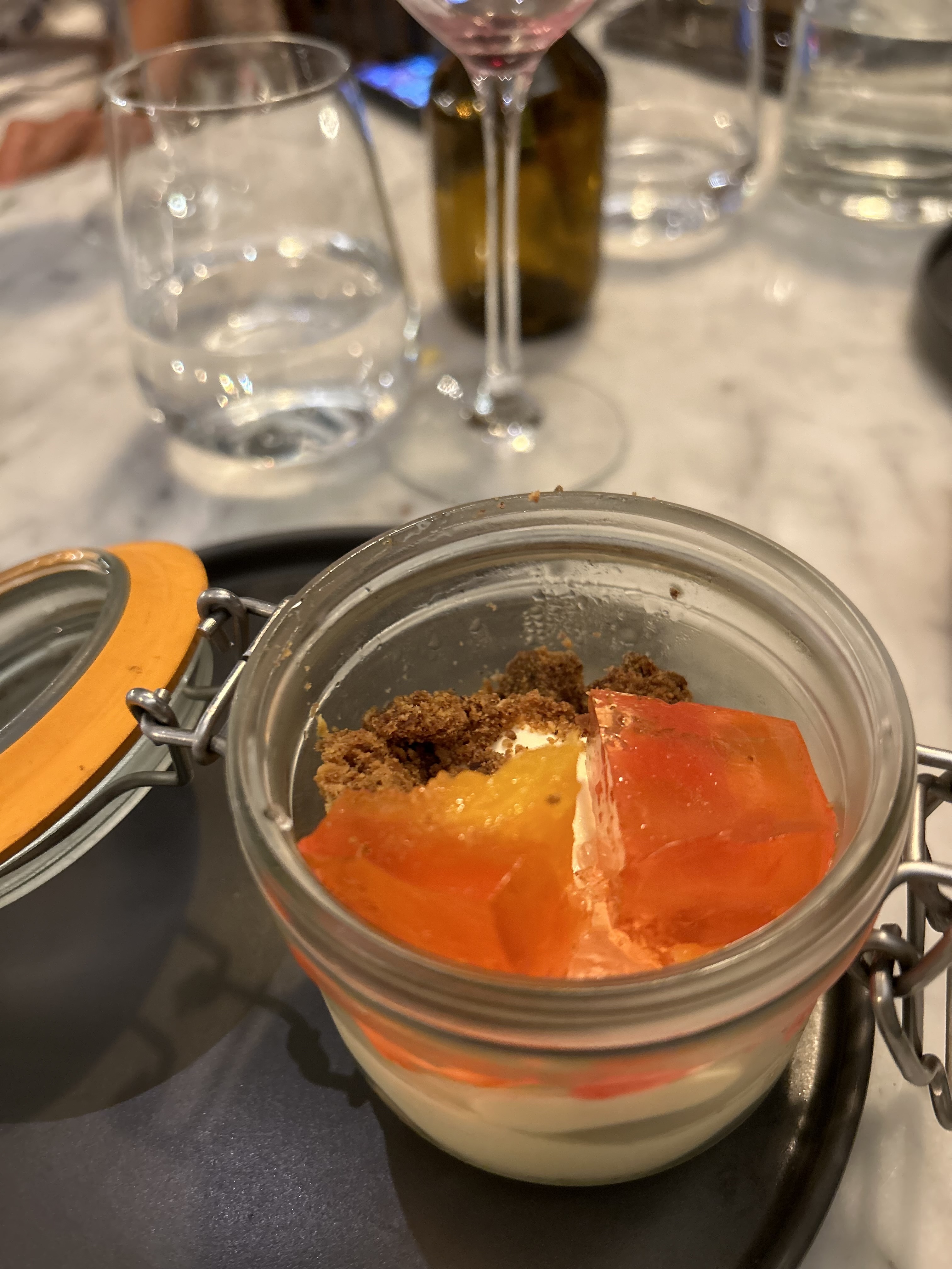 Faut que je vous parle d’un repas parfait…. On n’avait pas prévu d’y aller, en plus il était 13h45 on n’était pas sur de pouvoir rentrer, mais il ont sorti leurs nouveaux plats et leur menu midi entre 21 et 25€ entrée plat dessert…. Une dinguerie. Le gaspacho tomate pêche straciatella…. À tomber! De la douceur et de la fraîcheur, onctueux avec leur pain Bio sélectionné. Les sardines grillée ça paraît anodin, c’était juste les meilleures de ma vie (je les ai piochées chez madame 😉). Mon magret de canard était cuit absolument à la perfection, la puree, les poivrons et la petite réduction étaient bons seuls ET mélangés. Super équilibré. La daurade de madame était ABSOLUMENT somptueuse surtout avec le petit pesto par dessus, et l’accompagnement lasagne de légumes c’était exactement ce qu’elle aime. Le gâteau pistache abricot était aussi excellent parce que pour une fois ON SENT LA PISTACHE!! Et le combo abricot fini le repas avec brio. Et le tiramisu revisité version fraise était également un numéro d’équilibriste entre l’acidité de la rhubarbe, le sucré doux de la fraise, pas écœurant du tout. En plus ils sont trop sympas 😁