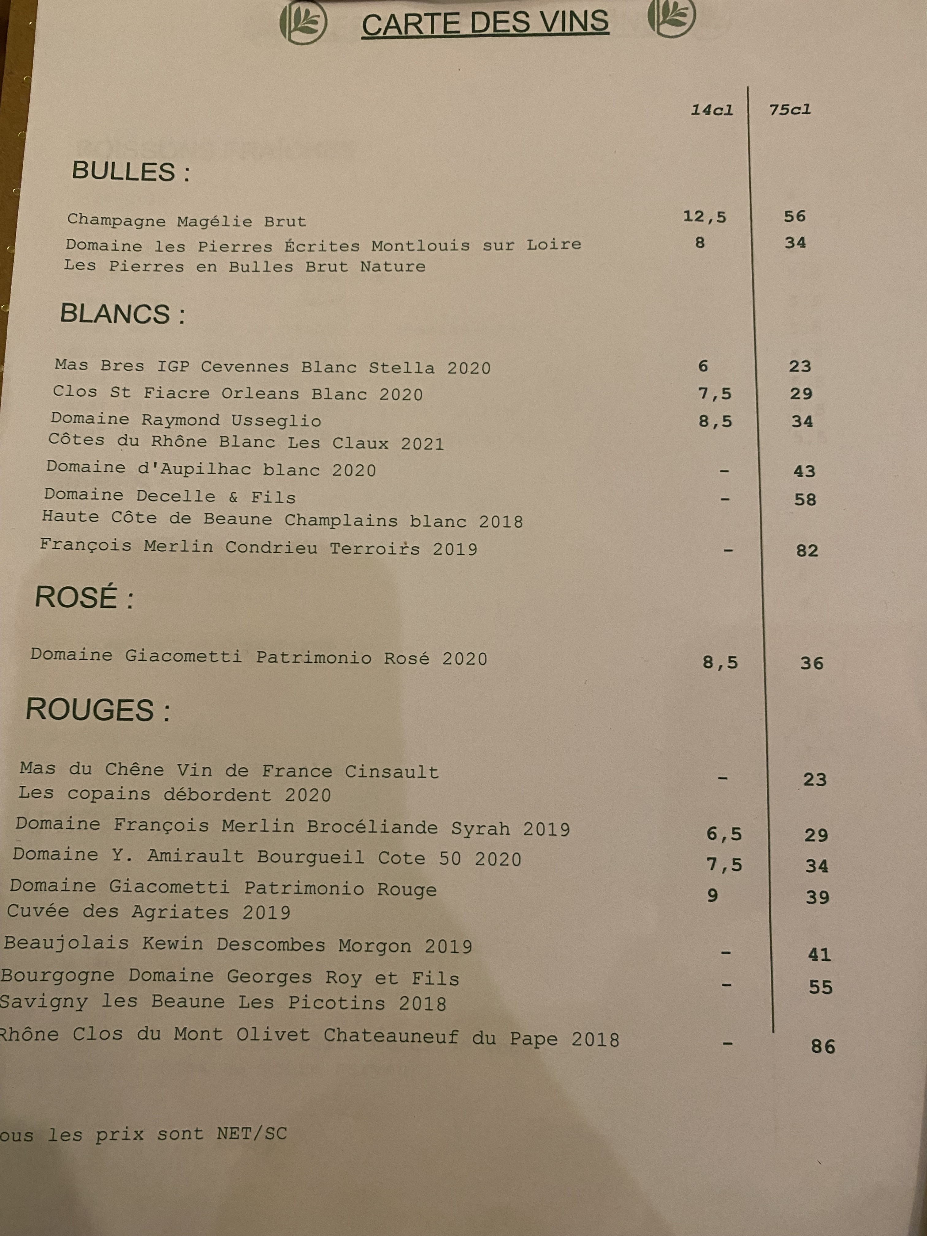 Excellente surprise !! Un menu le soir à 36€ pour entrée plat dessert, un soucis des produits utilisés, des propriétaires gentils qui prennent le temps de présenter la carte, belle carte de vins, et tous les plats pris était délicieux !!