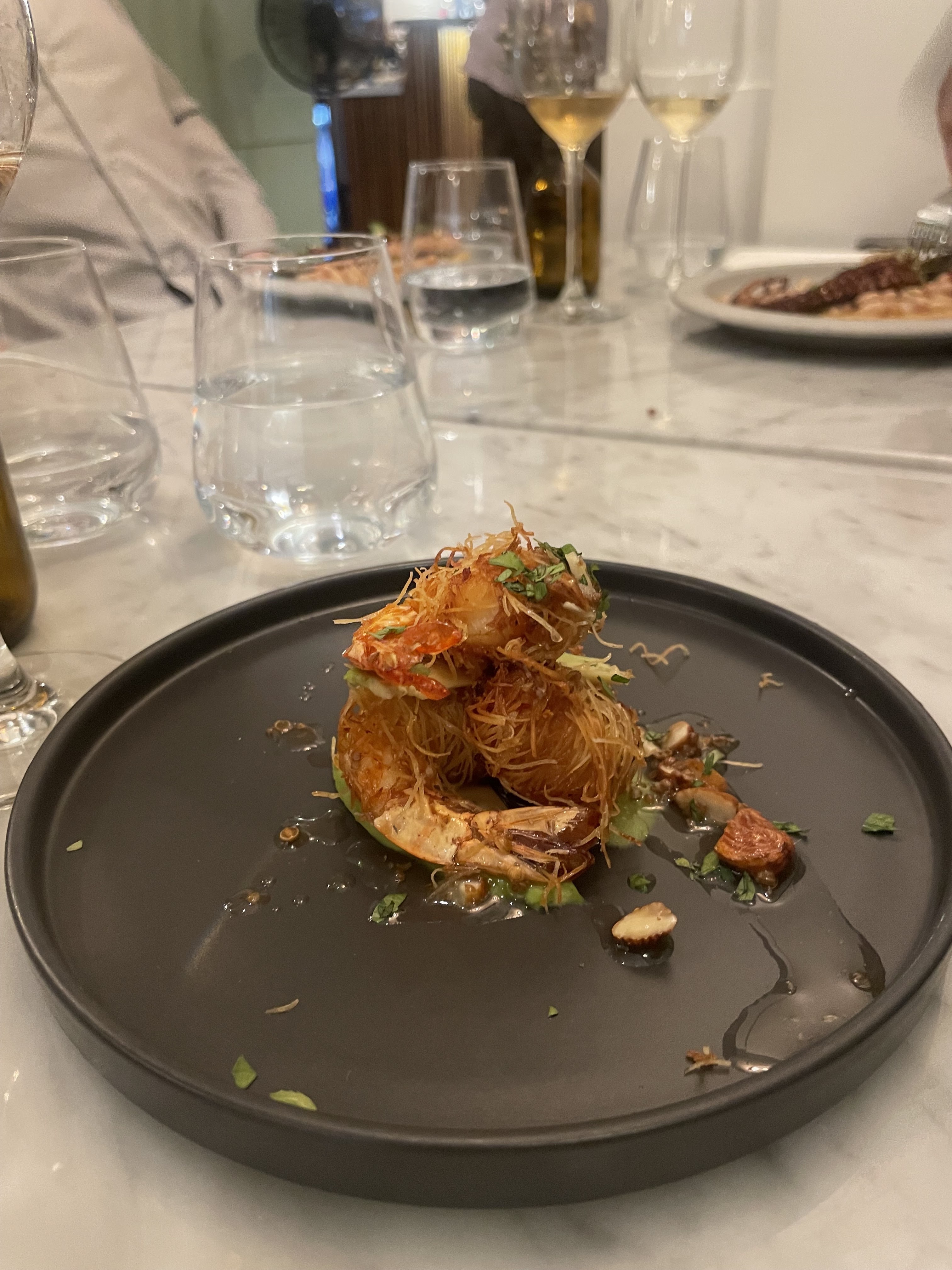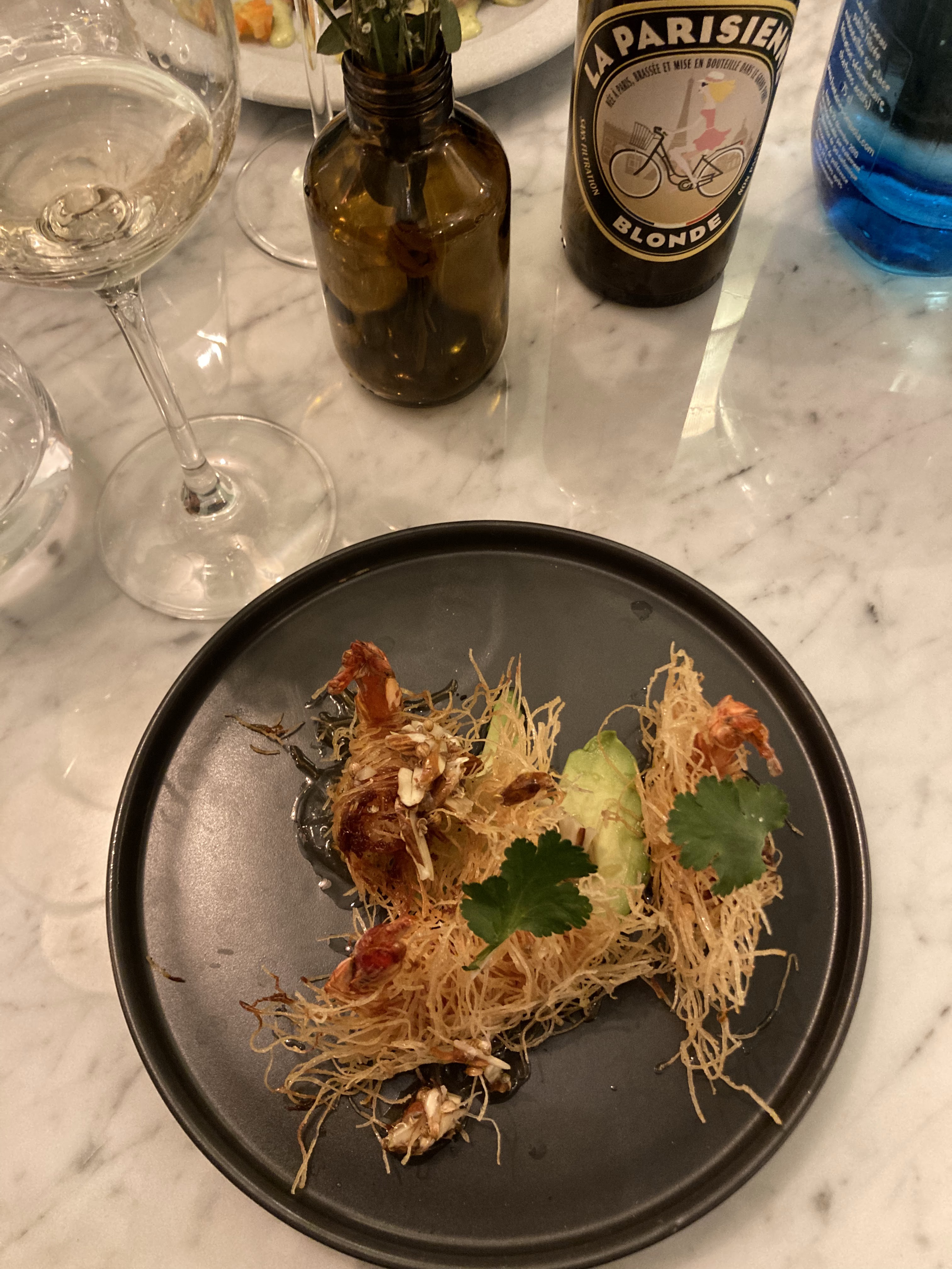 Nouvelle adresse qui vient d'ouvrir Dîner délicieux Entrée aux crevettes et avocat très goûteuse Équipe au top ! On reviendra et avec un petit digeo on espère 😉