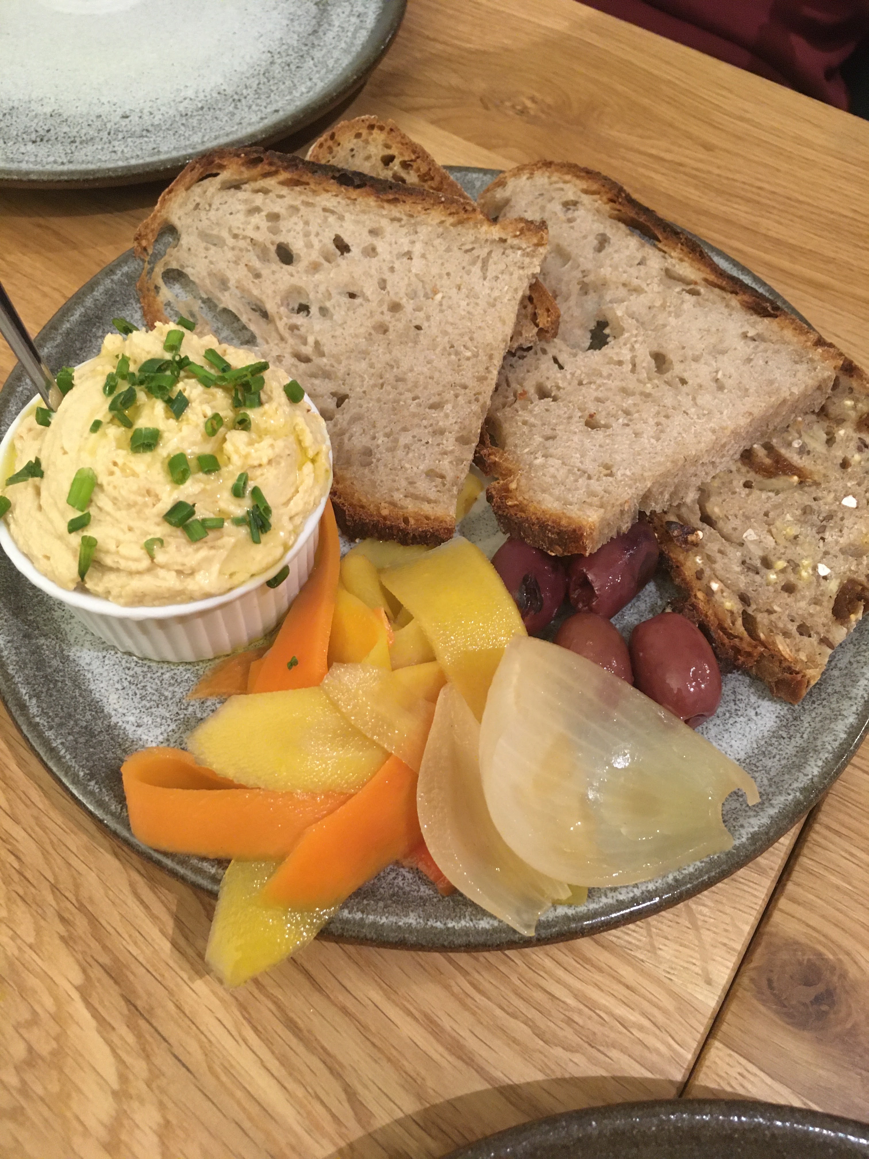 Ambiance très sympa, soirée entre copines où on a bien mangé. On a été très bien conseillées pour le vin, le cocktail et le repas étaient excellents. La serveuse (Jeanne) est très souriante, à l'écoute et attentionnée : merci pour ce bon moment. (Cocktail et assiette à partager avec le houmous ; panem ; desserts)